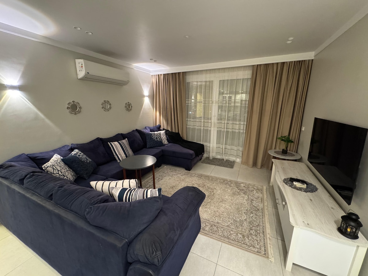 Это стильное жилье идеально подходит для групповых поездок. - Ultra Super Lux Fully Furnished apartment '' 'Area 130 m' ' *** Обратите внимание, что мы принимаем только семьи. - 8-й этаж, есть лифт. Готово к переезду Первоклассное расположение - Во всех комнатах есть кондиционер. — Потрясающий вид на море. — 2 спальни + большая гостиная + встроенная кухонная техника + ванная комната + балкон с видом на море + стиральная машина + холодильник + духовка + телевизор + микроволновая печь + плита + горячая вода. - Новая отделка, новая мебель и вся бытовая техника. - бесплатный WI-FI; - охрана;