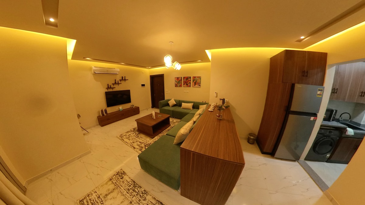 Добро пожаловать в Twin Superior Studio, Mokattam! Отдохните в этом современном номере площадью 35 кв. м, в котором есть 2 односпальные кровати, диван-кровать и современные удобства для 3 гостей. Студия расположена в комплексе Golden Gates, Мокаттам, и идеально подходит для тех, кто ищет комфорт и удобство. Наслаждайтесь высокоскоростным Wi-Fi, телевизором Smart TV с бесплатной подпиской на Netflix, WatchIt и Shahid, а также полностью оборудованной мини-кухней для спокойного отдыха рядом с основными достопримечательностями Каира.