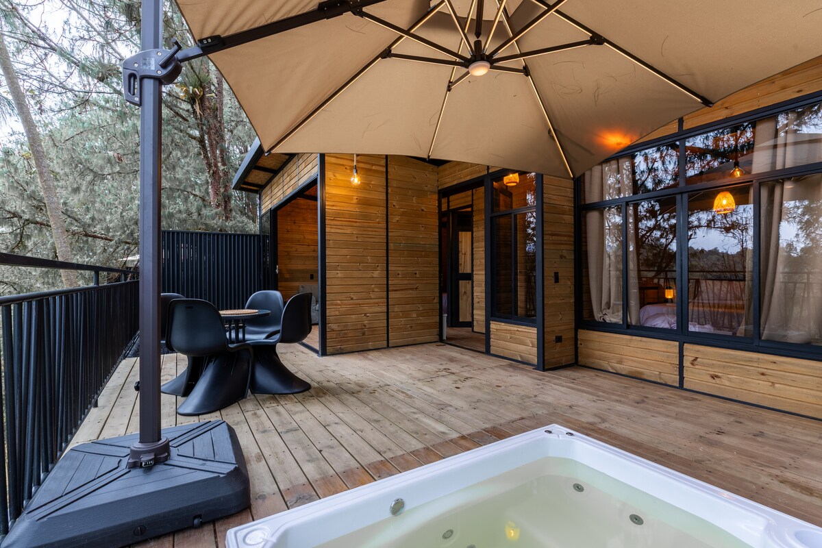 Деревянный домик с джакузи и выходом к водохранилищу для пары