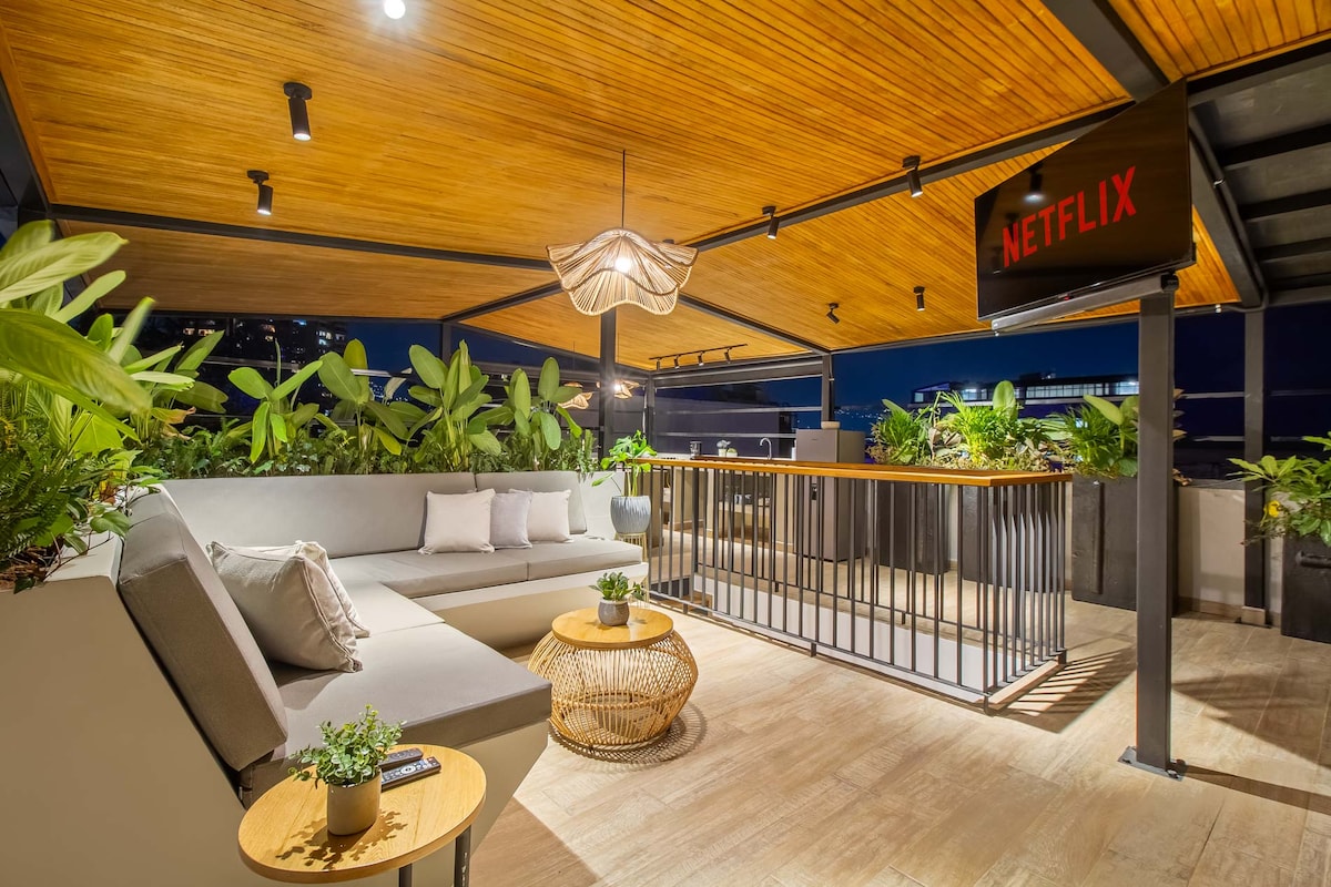 New Loft, designed by Luxe Living*, completely new in the best area of Poblado: ☞King bed+Queen bed ☞Private Jacuzzi ☞A/C ☞Reception 24/7 ☞Electric desk|Monitor ☞High-speed WiFi ☞Safes ☞Laundry Tower ☞Parking space ☞Rooftop|Pool ☞Coworking ☞Flat area of Poblado W/distance to Parque del Poblado|Provenza|Manila|Parque Lleras ☞ Private balcony on the 13th floor ☞Two 58” Smart TV ☞Easy access Metro & Uber ☞Luggage storage check-in&check-out ☞ Steps from top restaurants|bars|nightclubs|supermarkets