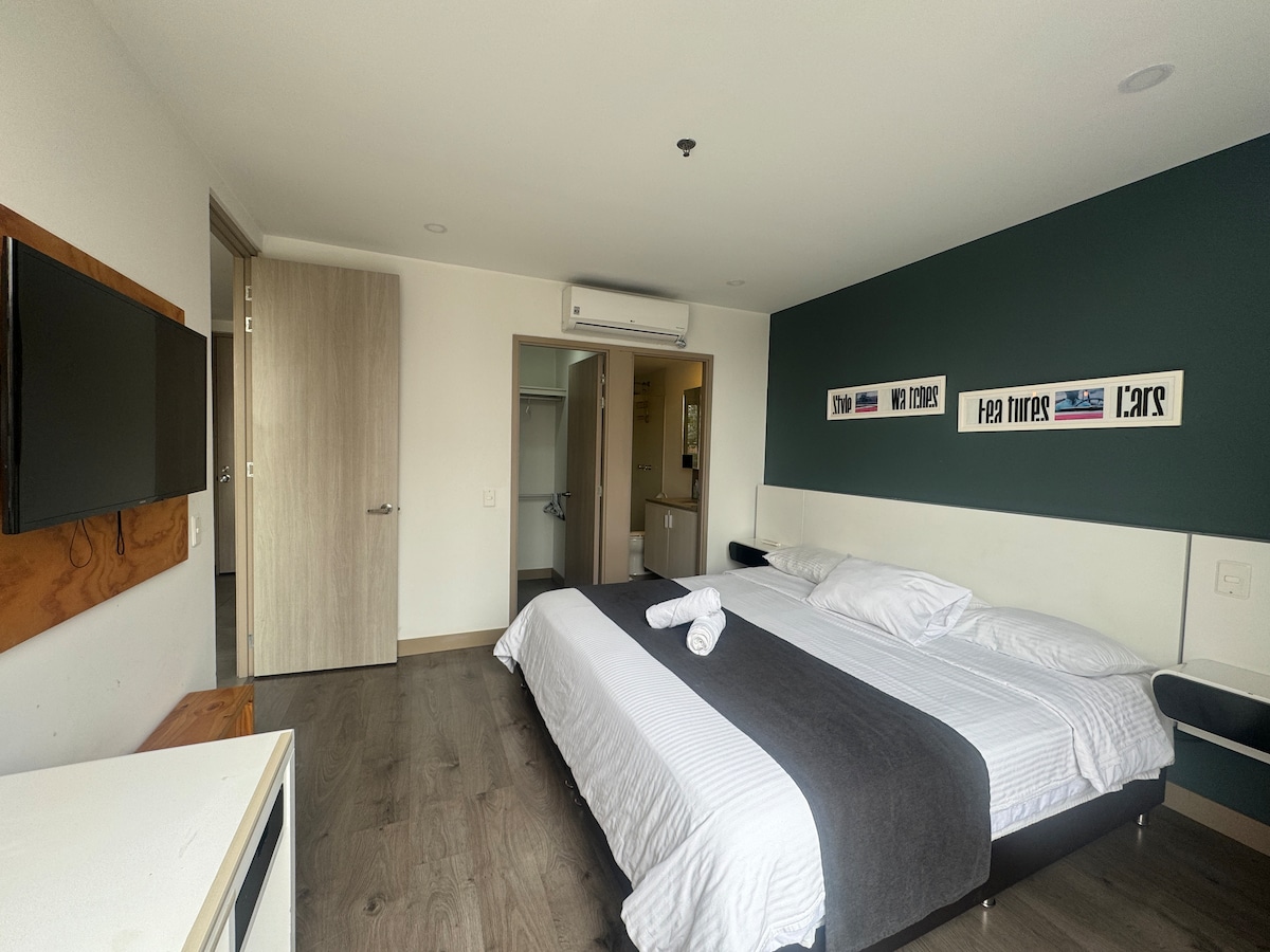 Take it easy at this unique and tranquil getaway. This beautiful, modern new 50 m² studio is ready for you. Near from ATMs, Grocery stores, Restaurants, and Cafes. 10 minutes walking to the night party in Provenza and Park Lleras. King bed, A/C, Netflix, amazing view from 14th floor, gym in the building, parking load, security 24/7. *Zero tolerance against sexual tourism. *Please see our house rules. *If you are Colombian resident you must pay IVA 19% additional.