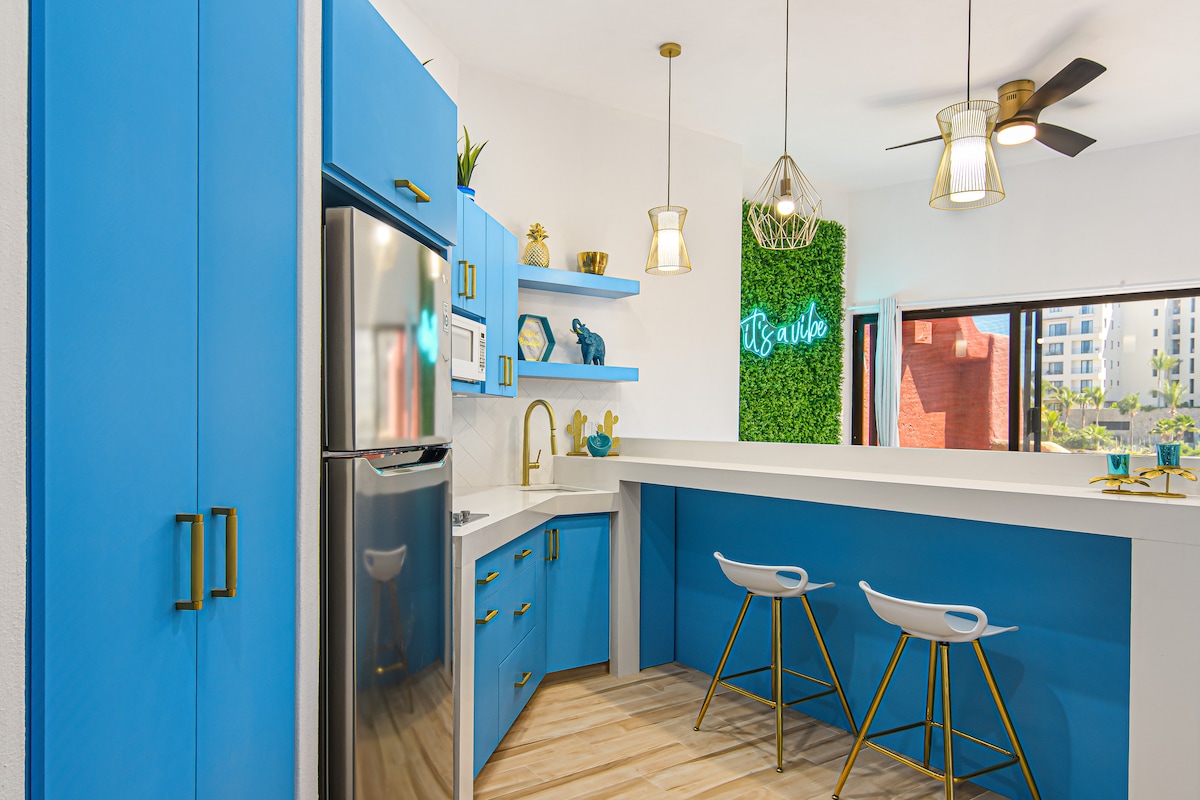 *** БАССЕЙН НА КРЫШЕ ОТКРЫТ **** Этот комплекс, расположенный в центре Кабо, находится прямо на пристани и находится всего в нескольких шагах от песка. Этот отремонтированный частный дом — лучшая тайна Кабо. До квартиры можно добраться на лифте. В этом люксе есть кровать размера California King size, телевизор, полностью оборудованная кухня, отдельный кондиционер, пляжные стулья, душевая кабина, частный высокоскоростной Wi-Fi, и это еще не все. Не несет ответственности за Без вида на пристань, см. фото. Лифт в настоящее время не работает