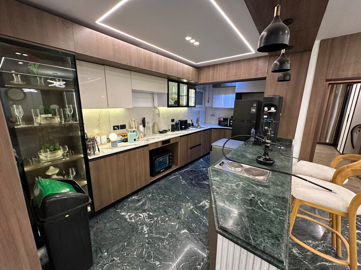 Роскошная квартира с видом на Нил в башнях Ага Хана в Каире, полностью отремонтированная в 2023 году с современным дизайном. Две спальни и гостиная с панорамным 5-метровым стеклянным окном с видом на Нил. Идеально подходит для посетителей Большого египетского музея, базара Хан эль-Халили, центра Каира и набережной Нила. Круглосуточная охрана, быстрый Wi-Fi и полностью открытая кухня — идеально подходит для семей и групп, ищущих комфорт, элегантность и потрясающие виды на Нил.