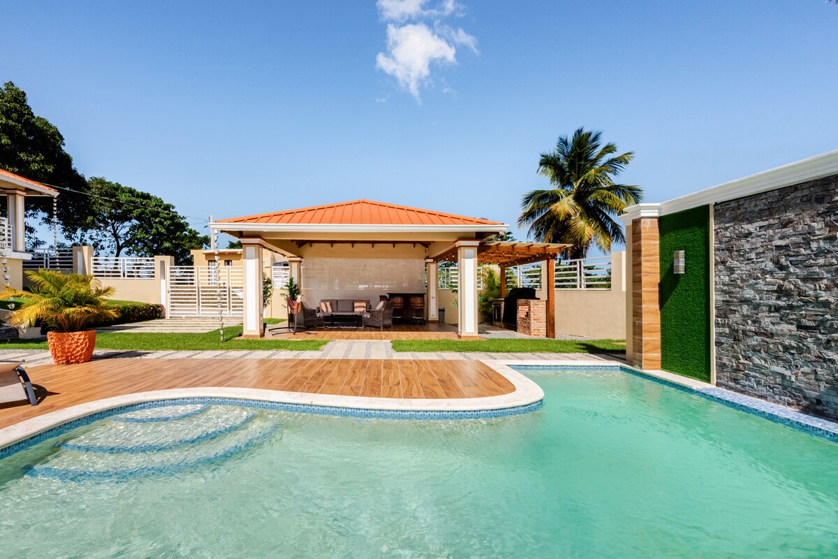 Espaciosa casa de campo, con piscina y picuzzi x separado. Ideal para compartir, desconectarse y sumergirse en un espacio de paz y naturaleza. Contamos con todas las comodidades para que su estadía sea placentera. Cercana a lugares de playas,turisticos/historicos y parques acuaticos. 3 min de la autovía del coral. 10 min de Higüey. 25/30 min de Punta Cana y La Romana. 20/25 min de Bayahibe/ Yuma. Este es un tiempo estimado siempre dependera del chofer y la condicion de la via.