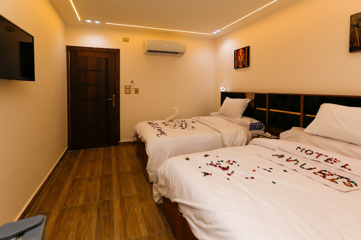 Совершенно новая квартира Deluxe с 3 спальнями и видом на пирамиды. Кондиционер, Wi-Fi, спутниковые телевизионные каналы, полностью оборудованная кухня, два лифта обслуживают здание. Всего в 3 минутах ходьбы от ворот пирамид.
