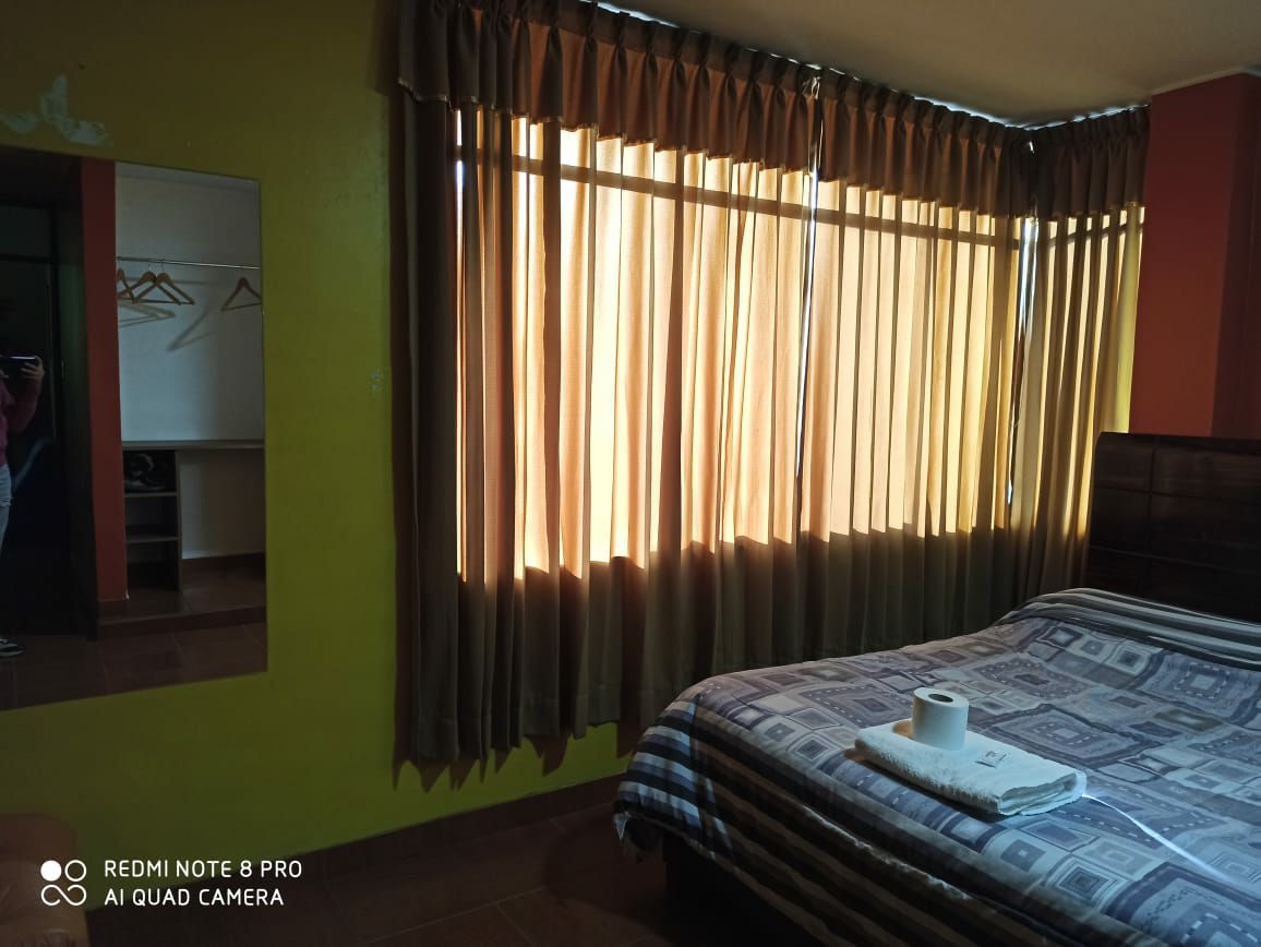 Наша квартира расположена в центре Уанкайо. Полтора квартала от парка Конституции. Идеально подходит для тех, кто хочет насладиться удобством пребывания рядом с основными услугами и достопримечательностями (рестораны, аптеки, торговые центры, ночные клубы, клиники и туристические достопримечательности). В доме три меблированные спальни, оборудованная кухня, столовая, гостиная и просторное патио с меблированной беседкой, гараж и игровая зона.