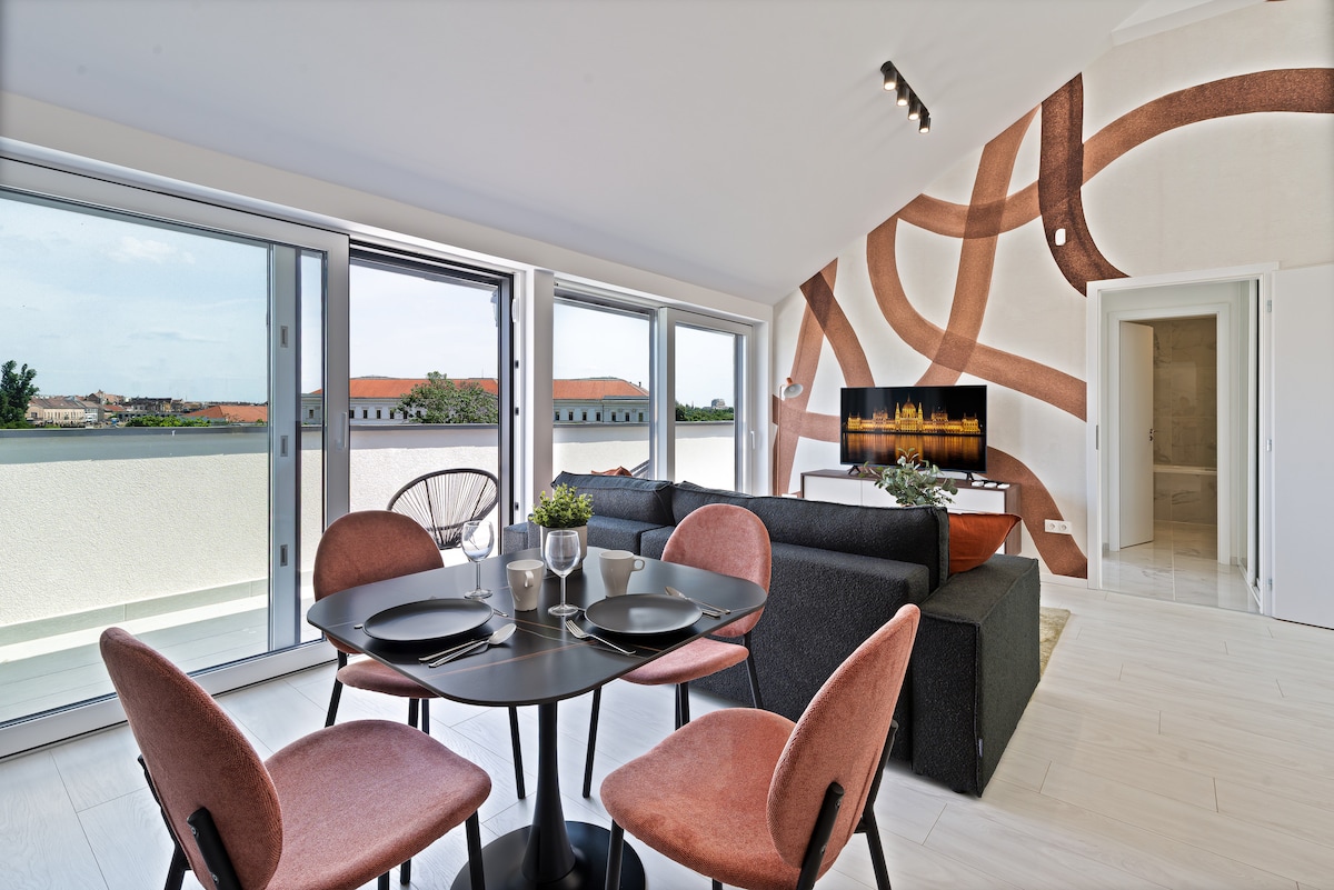 Исследуйте Будапешт из нашей квартиры, расположенной в центре города, в сочетании с современным дизайном и спокойствием. В нескольких минутах от центра города, насладитесь закатами на нашей террасе и расслабьтесь в спокойном месте. Забудьте о парковке с нашим охраняемым гаражом, но на общественном транспорте поблизости легко добраться на общественном транспорте. Погрузитесь в атмосферу Будапешта, наслаждаясь спокойным уединением. Добро пожаловать в городскую жизнь, чтобы немного успокоиться!