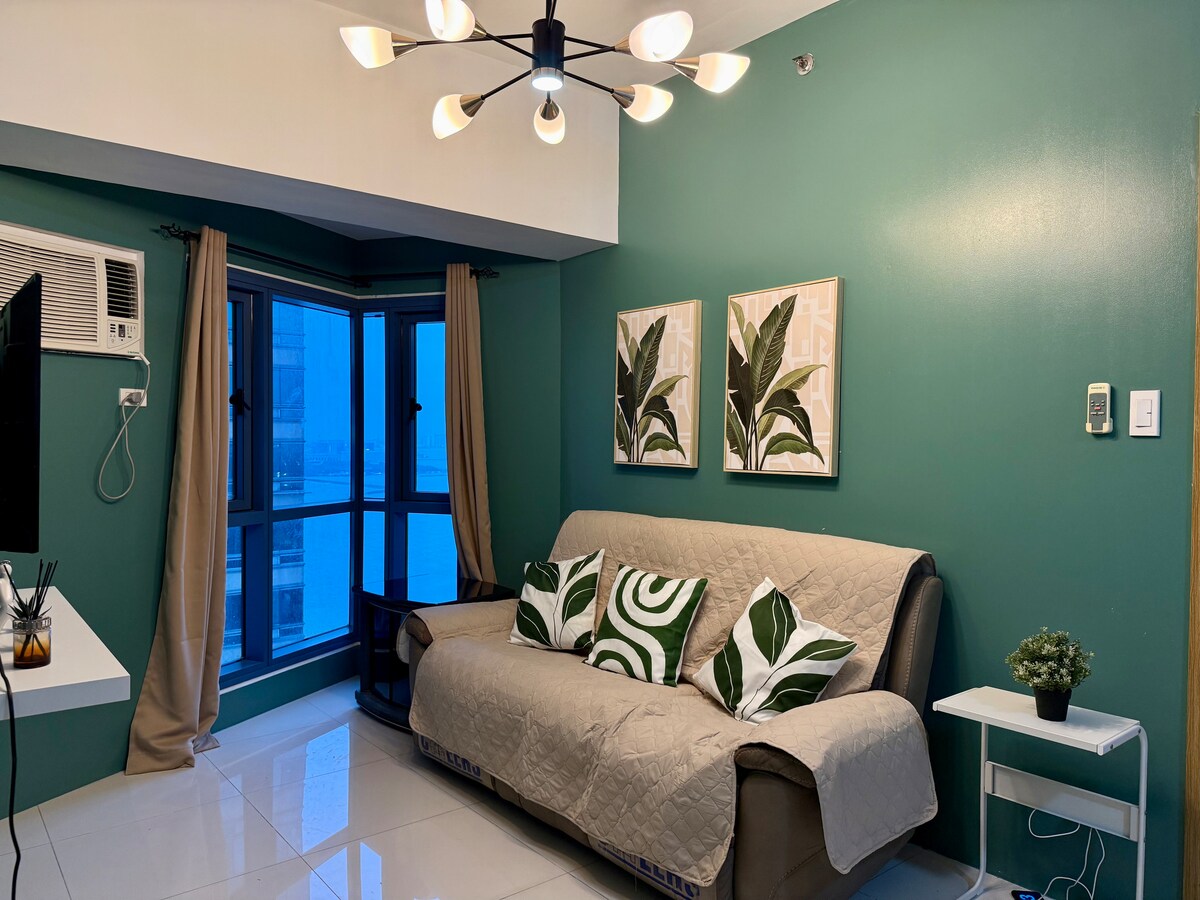 Наслаждайтесь спокойным отдыхом в нашей чистой, уютной квартире в Grand Riviera Suites — всего в нескольких шагах от посольства США, с бесплатным Wi-Fi и легким доступом к Intramuros и Mall of Asia. В квартире площадью 28 кв. м могут разместиться до 3 гостей. Есть кровать, выдвижной диван и диван — идеально подходит для пар, друзей или небольших семей. Всего 300 м до парка Рисаль, 500 м до Интрамуроса, 1 км до океанского парка и 6 км до торгового центра SM Mall of Asia. Наслаждайтесь быстрым Wi-Fi, кондиционером, горячим душем, кухней и круглосуточной охраной. Плата за уборку не взимается, самостоятельное прибытие.