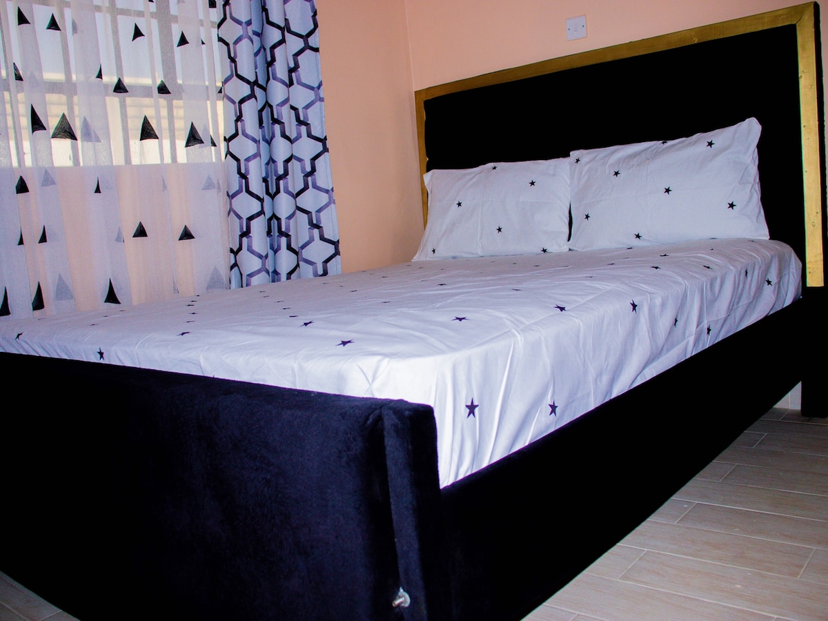 Люкс Orchards создан для вашего комфорта! Мы находимся в Маджимбо, рядом с отелем Gerish и рынком Маджимбо. Вся квартира (Orchards Suites) имеет 18 похожих люксов, доступных как для краткосрочного, так и длительного пребывания. Изысканно меблированная кровать размера Queen size, вы будете наслаждаться высокоскоростным Интернетом и смарт-телевизором 43дюйма. Квартира расположена на первом этаже и доступна по лестнице.