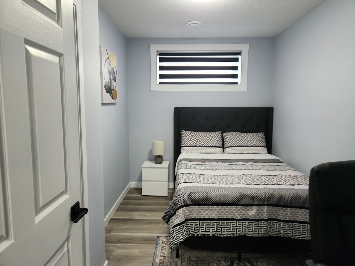 A new built basement suite. Cozy, Peaceful and a place that makes you feel home away from home. It comes with a Living Area where you can relax and watch programs of choice, a Kitchen that allows you prepare quick meals, a comfy bedroom with a queen sized bed for two and a full sized bathroom. Foldable work station in case you need to do some work on your laptop. You also have a nice backyard area where you can relax just like home.