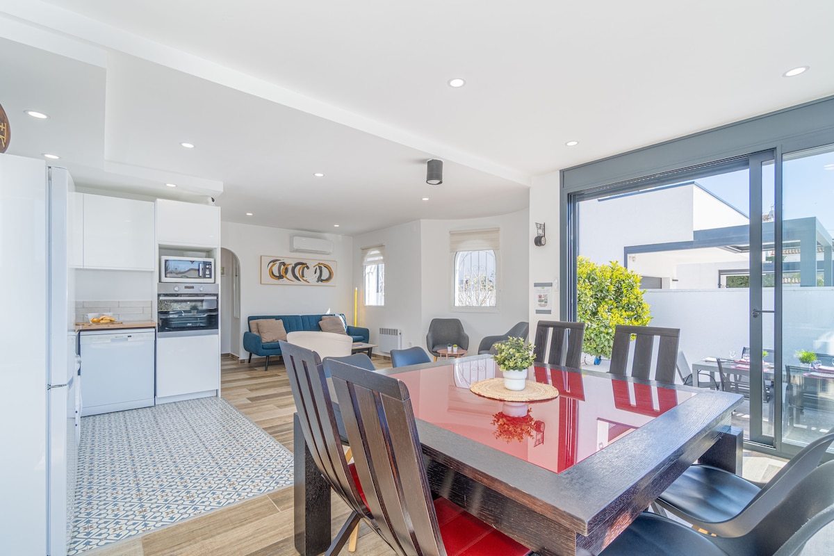 Empordà Soul — это современный загородный дом (построен в 2025 году) с садом площадью 600 м², 10-метровым бассейном с соленой водой и крыльцом с барбекю. К услугам гостей 2 спальни (одна с лофтом), 4 кровати, 2 ванные комнаты и душ на открытом воздухе. Полностью оборудованная кухня, Wi-Fi, рабочее место, пеллетная печь и домашние животные приветствуются. Менее 10 минут до пляжей Сант-Пере-Пескадор и Эмпуриес. Идеально подходит для семей, велосипедистов и любителей спокойствия и природы.