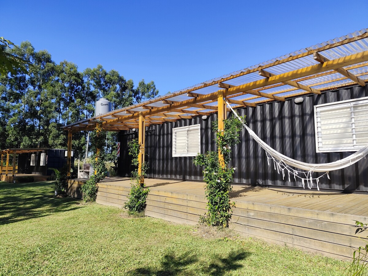 Это место приглашает нас насладиться и прожить опыт пребывания в современном и комфортабельном доме-контейнере... в окружении природы, вы будете в контакте с зеленым ландшафтом с ароматами цитрусовых и эвкалипта... Идеально подходит для отдыха и побега от рутины.