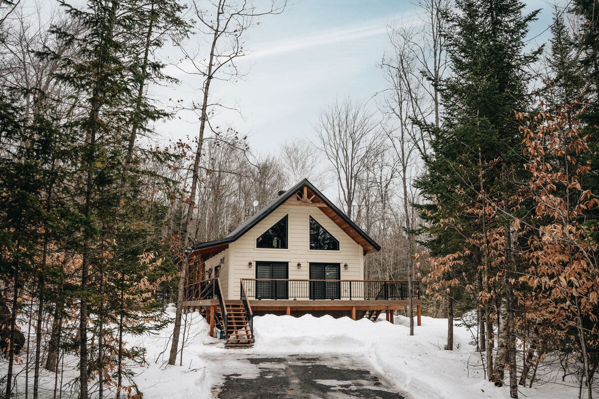 Наше скандинавское лесное шале идеально подходит для качественного отдыха в паре (или с ребенком) или для работы (с высокоскоростным Wi-Fi). Деревянный интерьер теплый, уютный. Из полноразмерных окон открывается потрясающий вид на лесистую долину. Кухня с открытой планировкой и гостиная позволяют вам общаться во время приготовления пищи. Если вы предпочитаете готовить на улице, есть костровая яма с грилем и обеденным столом на открытом воздухе. Всего в 70 минутах езды от Монреаля. Озеро находится в 25 минутах ходьбы, если припарковаться поблизости.