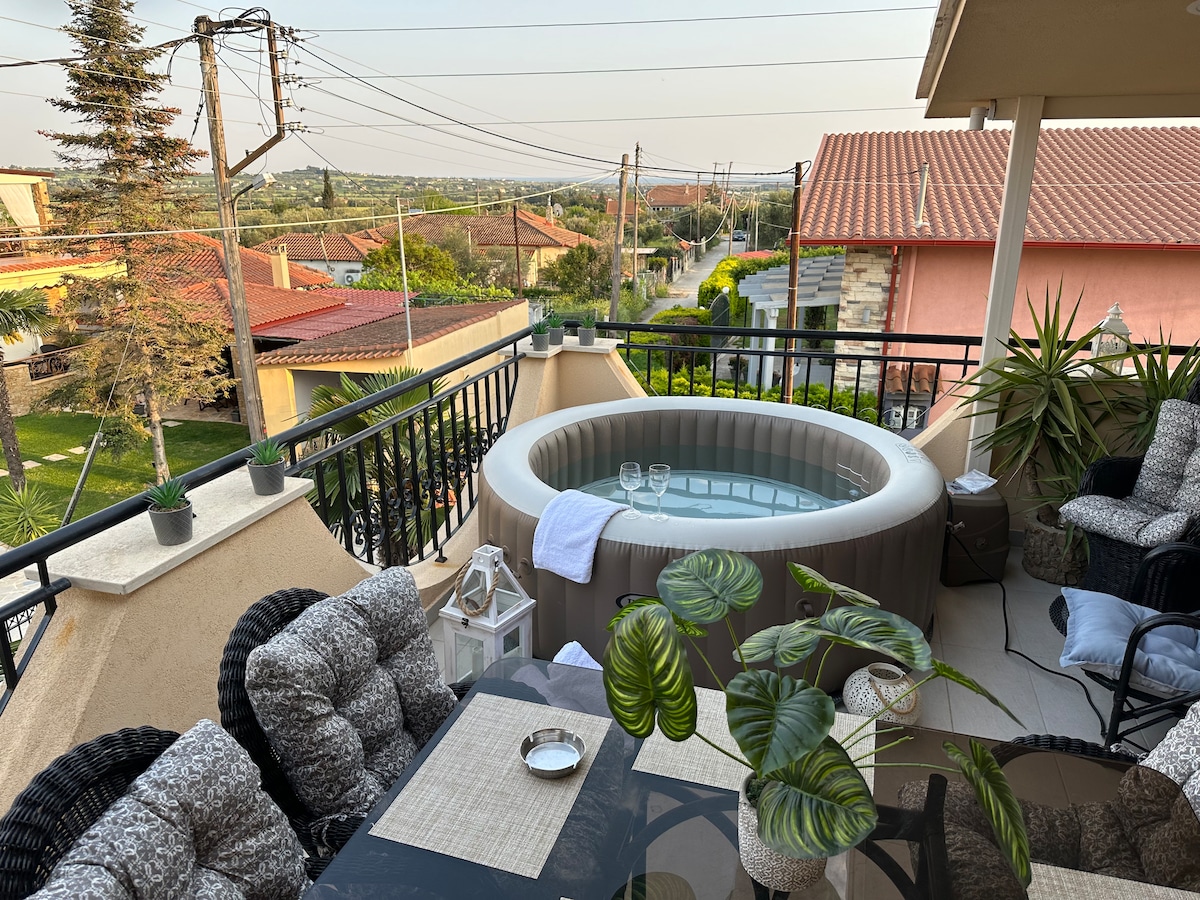 Наша уникальная квартира расположена на втором этаже сказочного дома в Эпаноми. Это в 3минутах езды на машине от пляжа, в тихом районе. Насладитесь видом на гору Олимп, море и закат! Суперудобная кровать, уютный диван-кровать на двоих, красиво оформленное пространство с джакузи, огромный балкон, удивительный сад и барбекю, безопасная парковка — вот некоторые из удобств. Эпаноми находится очень близко к аэропорту Салоники и аэропорту Македония!