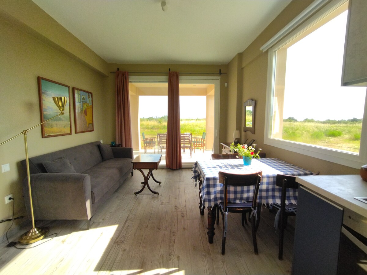 1-комнатная квартира с полностью оборудованной кухней, гостиная с двуспальным диваном-кроватью, ванная комната с душем и собственный балкон. В 200 метрах от рыбацкого порта Эпаноми. В 3 минутах ходьбы от марионетки находятся различные рыбные таверны, пицца, кафе, детская игровая площадка, 2мини-маркета и бар-кафе. Мезонет находится в 300 метрах от пляжа и в 5 минутах езды от знаменитого песчаного пляжа Потамоса с различными оживленными пляжными барами. Навагио и Фанари - еще два отличных пляжа