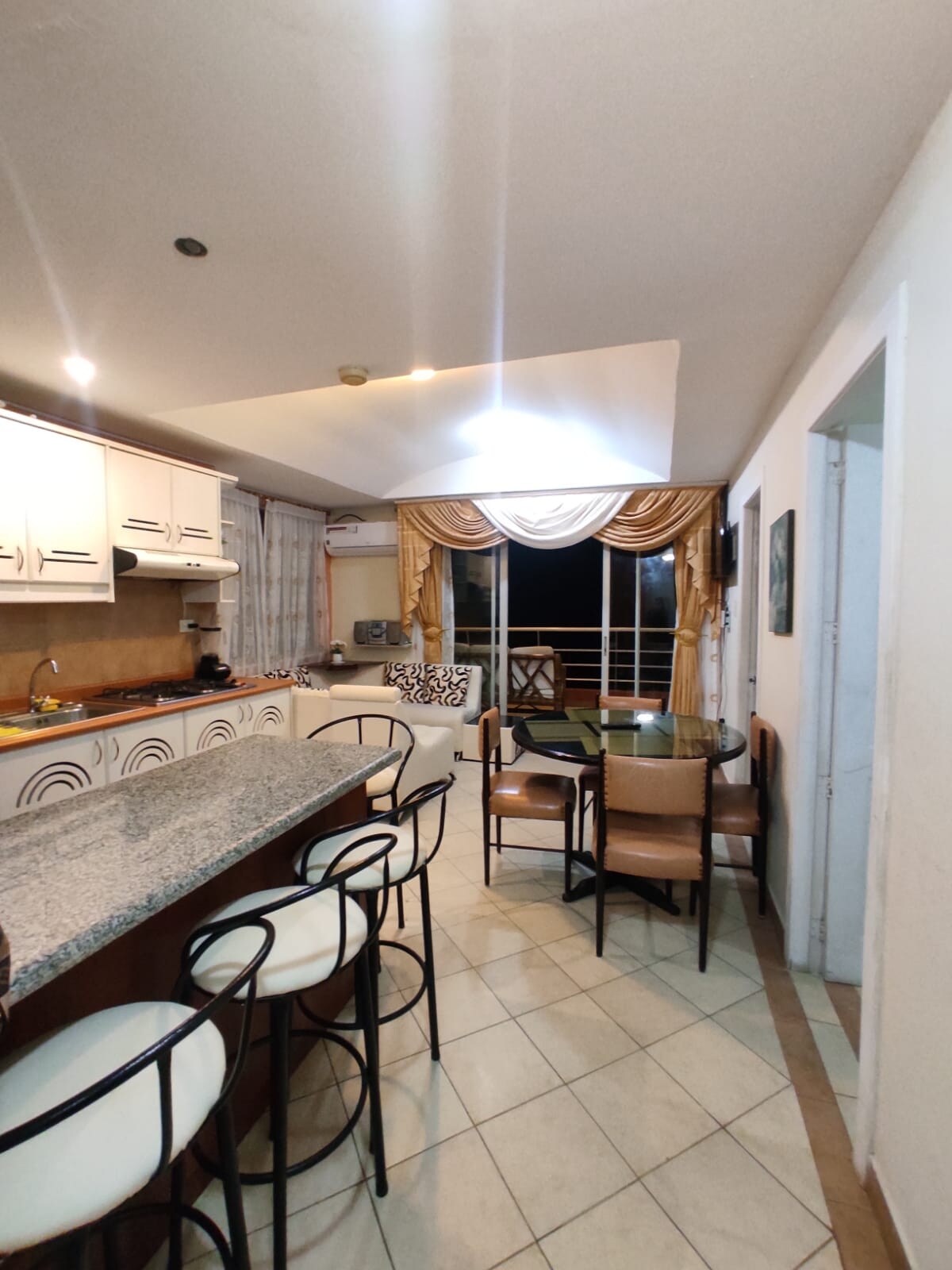 Квартира в Атакамсе - прекрасный вид на океан. Услуги включают: вместимость 7 человек, две спальни, две ванные комнаты, 5 кроватей. Кухня, холодильник, блендер, микроволновая печь, вся кухонная посуда и фен в каждой ванной комнате. Столовая с двумя помещениями и лифтом. Кондиционер, Wi-Fi. Уборка, парковка и охрана круглосуточно.