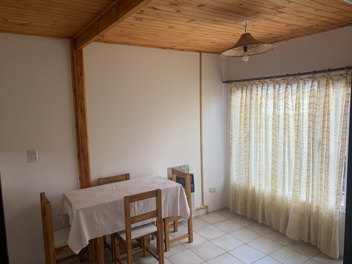 Мы предлагаем вам красивую квартиру на первом этаже, очень светлую, просторную и современную, с прекрасным видом на Cerro 21. Она находится очень близко к центру города, в жилом районе Эсквеля, очень тихом и очень близко ко всем туристическим достопримечательностям города. Вы можете припарковать свой автомобиль на улице, этот район очень безопасный. К услугам гостей газовое отопление, оборудованная кухня, кофеварка, тостер, телевизор, электрический чайник и холодильник.