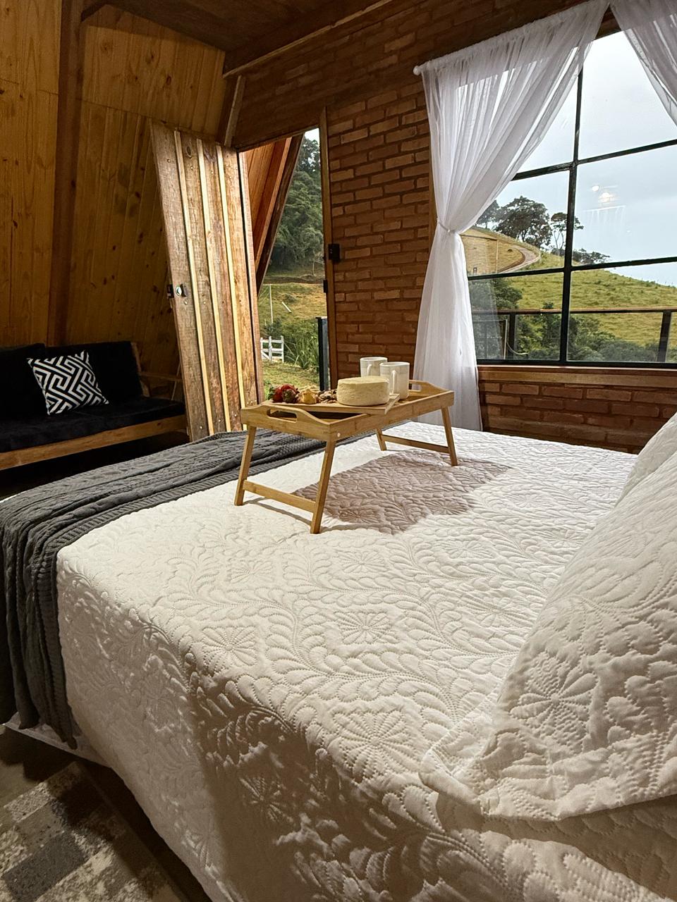 Acordar com o canto dos pássaros, cercado pela natureza, em um chalé aconchegante. Aqui, você e quem você ama podem aproveitar momentos inesquecíveis, longe da correria da cidade, com todo o conforto e privacidade que merecem. Pensado para proporcionar uma experiência única: lareira para noites aconchegantes, varanda com vista para o pôr do sol, banheira relaxante e uma cama espaçosa para garantir o descanso perfeito. Reserve agora e viva momentos de tranquilidade.