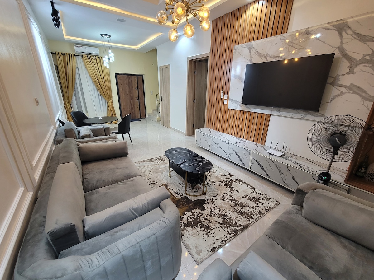 🏡~Entire 2-Bedroom Modern Duplex Home in Lekki, Lagos. DESCRIPTION ¤ 24/7 Electricity🔌 ¤ Clean Water💧 ¤ Workspace 👨💻 ¤ Unlimited Wi-Fi ¤ Netflix | YT ¤ Keycard access to Estate Gyms & Pools ¤ Washing Machine ¤ Private Parking ¤ 24/7 Security ¤ Cleaning every 3 days 🧹 ¤ Flood Free ⚡️ ¤ Close proximity to Supermarkets, 24/7 Grocery store, Restaurants, Club/Lounge, Salons, Spa, General hospital, Lekki Conservation Center (Nature Preserve)
