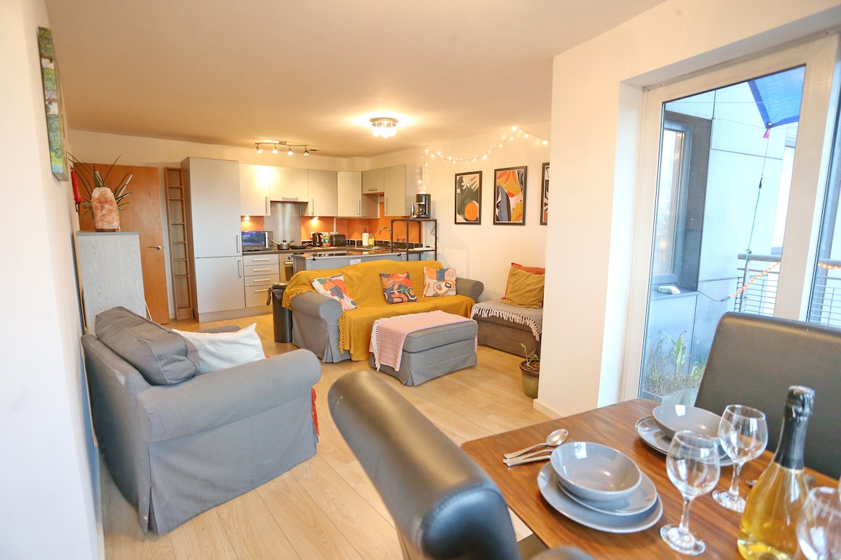 Насладитесь пребыванием в нашей современной квартире с 2 спальнями, идеально расположенной для концертов, футбола и легкого доступа к городу. Внутри вас ждет светлая гостиная с мягкими креслами и телевизором со Smart TV, где можно расслабиться в комфорте. Полностью оборудованная кухня имеет все необходимое для приготовления пищи. Две просторные спальни с двуспальными кроватями дают вам возможность отдохнуть, а стильная ванная комната с ванной предлагает успокаивающий отдых после долгих дней знакомства с Манчестером или посещения мероприятий всего в нескольких минутах езды.