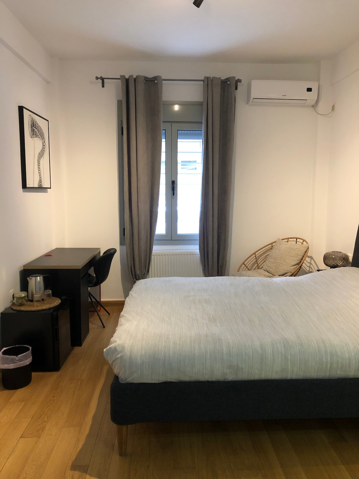 Современная квартира-студия. Элегантно обставленный кондиционер , ЖК-телевизор с плоским экраном, мини-кухня с микроволновой печью,холодильник, чайник,принадлежности для чая/кофе, сейф, фен и лучшее чистое белое постельное белье и полотенца. Поприветствуйте кофейные капсулы и водные бои. На кухне нет плиты. В одной остановке от центра ПЛАКИ и Монастираки.