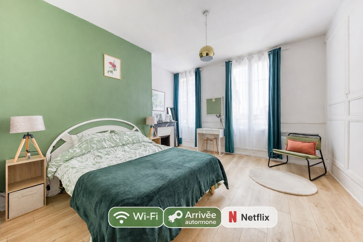 ГНЕЗДО: элегантная квартира, идеально подходит для спокойного отдыха или деловой поездки в полном спокойствии! Во время вашего пребывания в ГНЕЗДЕ вам понравится... ★ быть в 50 м от зеленого плана ★ быть в 5-ти минутах от центра Шартра, ★ доступ к A11 за 10 минут ★ зарезервированное парковочное место. ★ уборки в конце пребывания ★ постельное белье предоставляется ★ оптоволоконный Wi-Fi Наслаждайтесь агломерацией в лучших условиях. До встречи! Одри и Жюльен, ваши хозяева