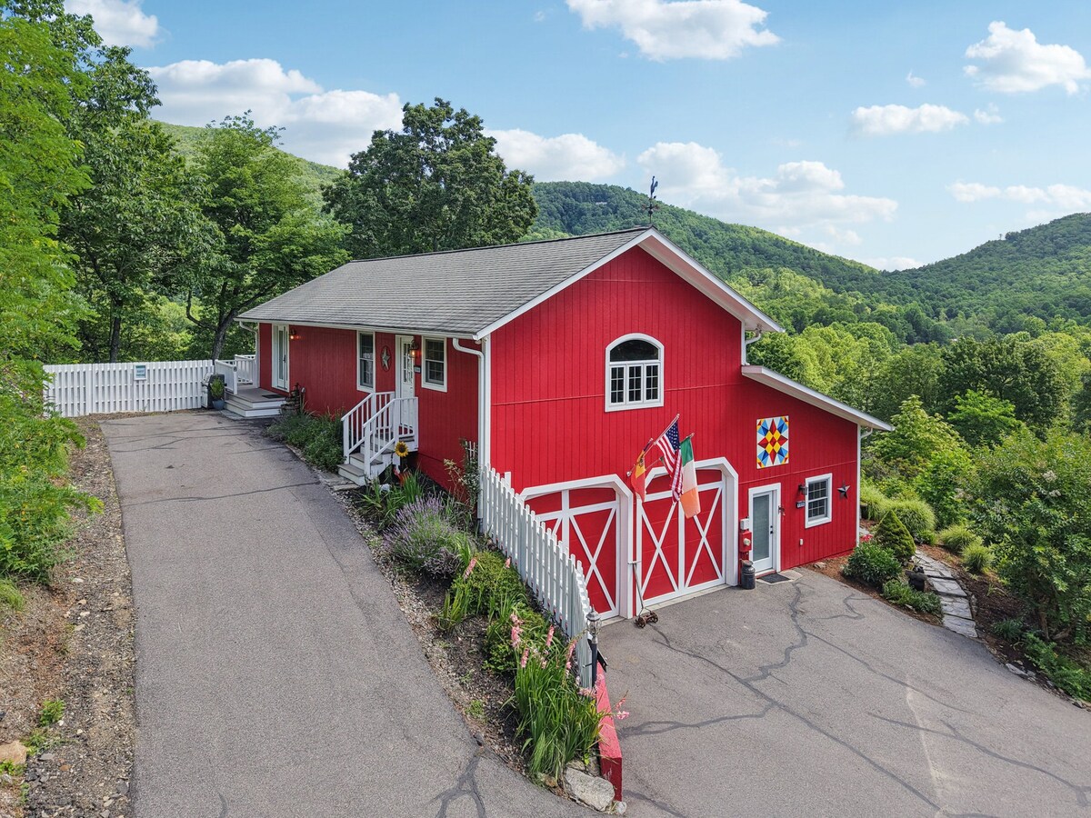 Wake up inside a storybook Red Barn perched above the Blue Ridge with panoramic mountain views from every window and your private hot tub waiting under open skies. Two King suites, a chef's kitchen, a wood-burning fire pit, and a spacious deck with a grill make this a true four-season escape. Just 20-25 mins to Asheville's Biltmore Estate, yet completely tucked away. Pure mountain magic awaits.
