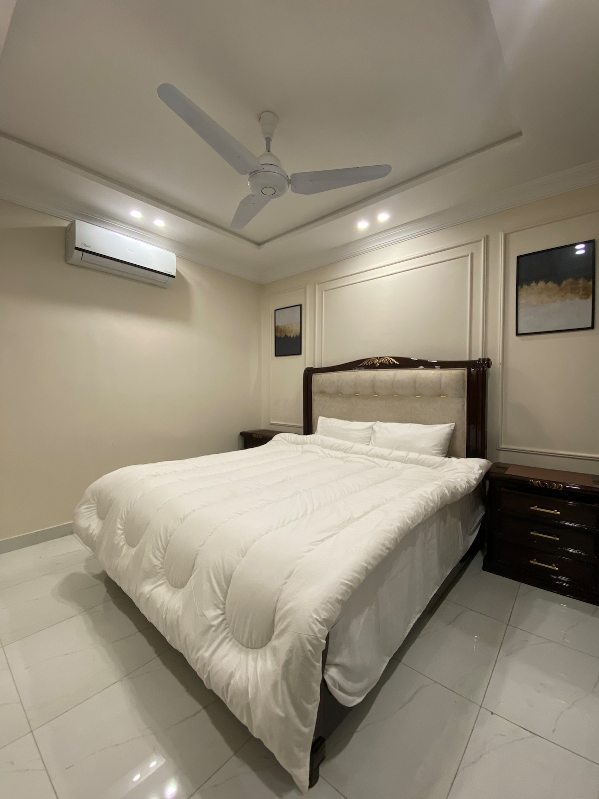✨Experience Royal Comfort in Faisalabad 🛏 Bed + closet + dressing table + fridge + bath with mini pool | WiFi 🔐Gated community with 24/7 security 🎟 1-day Circle Club pass for 2(Paid, Optional) : gym, sauna, pool, squash, badminton, table tennis Note: on booking of 7+ nights get free complimentary 1 day pass for 2 📍 Near Lyallpur Galleria, Approx 20 min to Clock Tower & 45 min to Airport 👨👩👧 Families & married couples only | ID required | No parties/bachelor groups