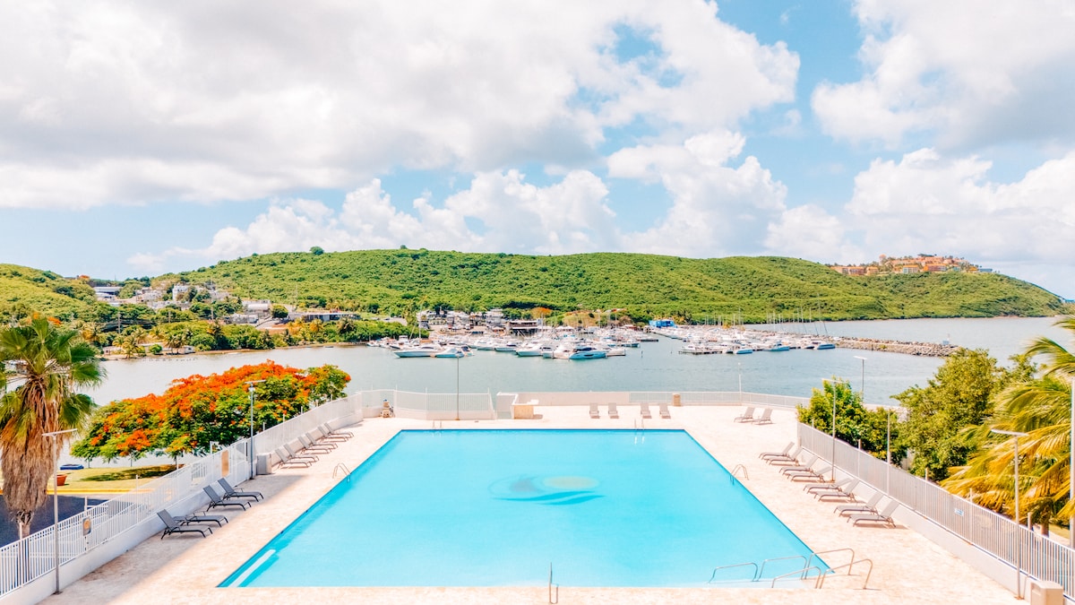Welcome to Our Property at Dos Marinas I. Unwind at this oceanfront apartment. A million dollar view to icacos, culebra, Vieques and palomino from the balcony. This Apartment is a place for you to retreat, relax, reset and revive yourself. Located close to four marinas,shops and restaurants. The condo has a Olympic swimming pool, gazebos, basketball and tennis courts. A Fully Equipped bedroom with AC. Wake up to the Ocean breeze and sound. Note: Ac is only in the bedroom.