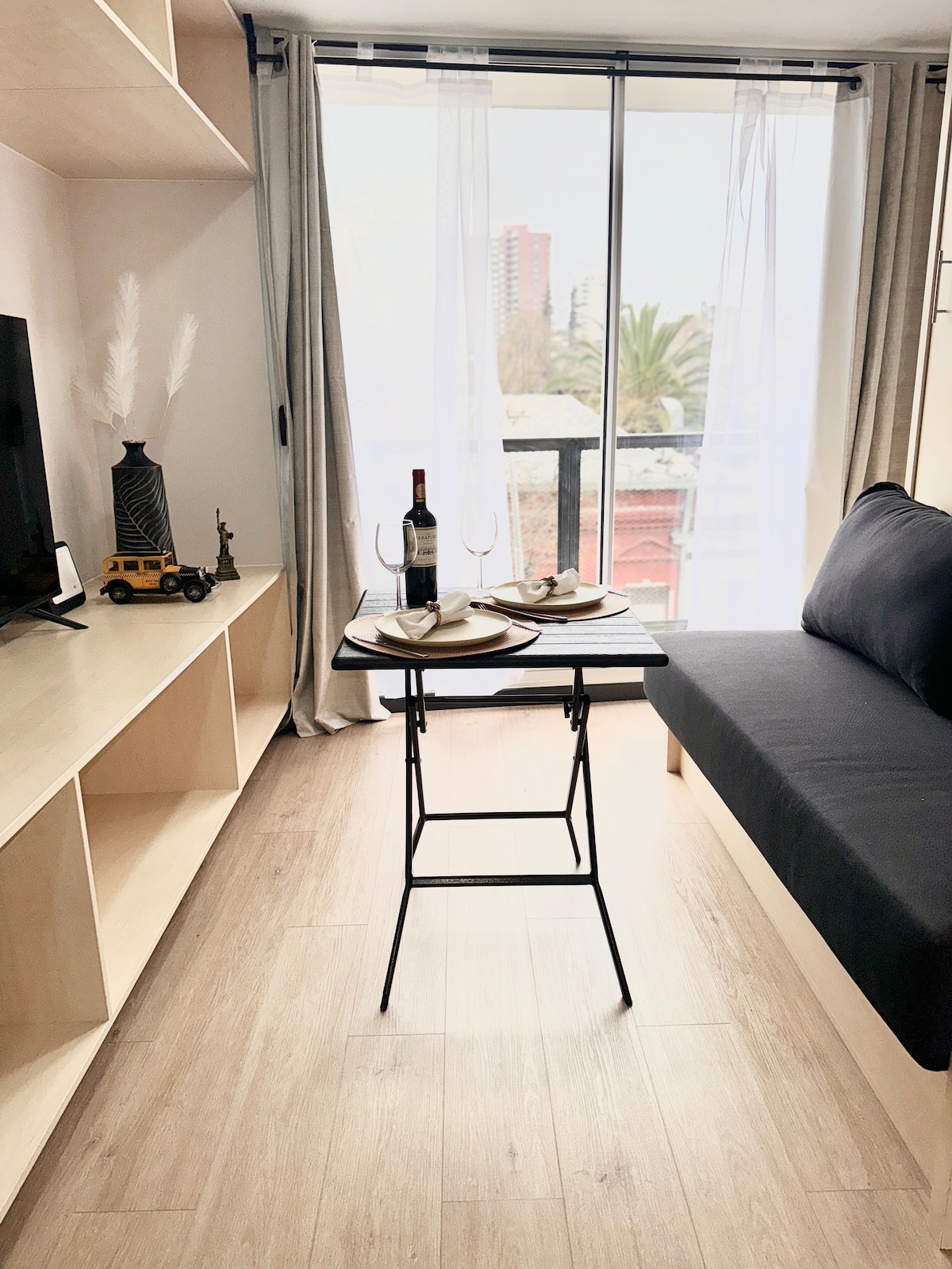 Te invitamos a vivir una grata experiencia en tu viaje a Santiago. Este departamento estudio es perfecto para quienes buscan un lugar cómodo, sin pagar de más. Si viajas por trabajo, conciertos, trámites o turismo, esta es una excelente opción. Está ubicado a sólo 3 cuadras del Metro Parque Almagro, en el Centro de Santiago. Además, está situado a pocas cuadras del Parque O’Higgins, Movistar Arena, Fantasilandia, Teatro Caupolicán, Teatro Cariola y Teatro Coliseo.