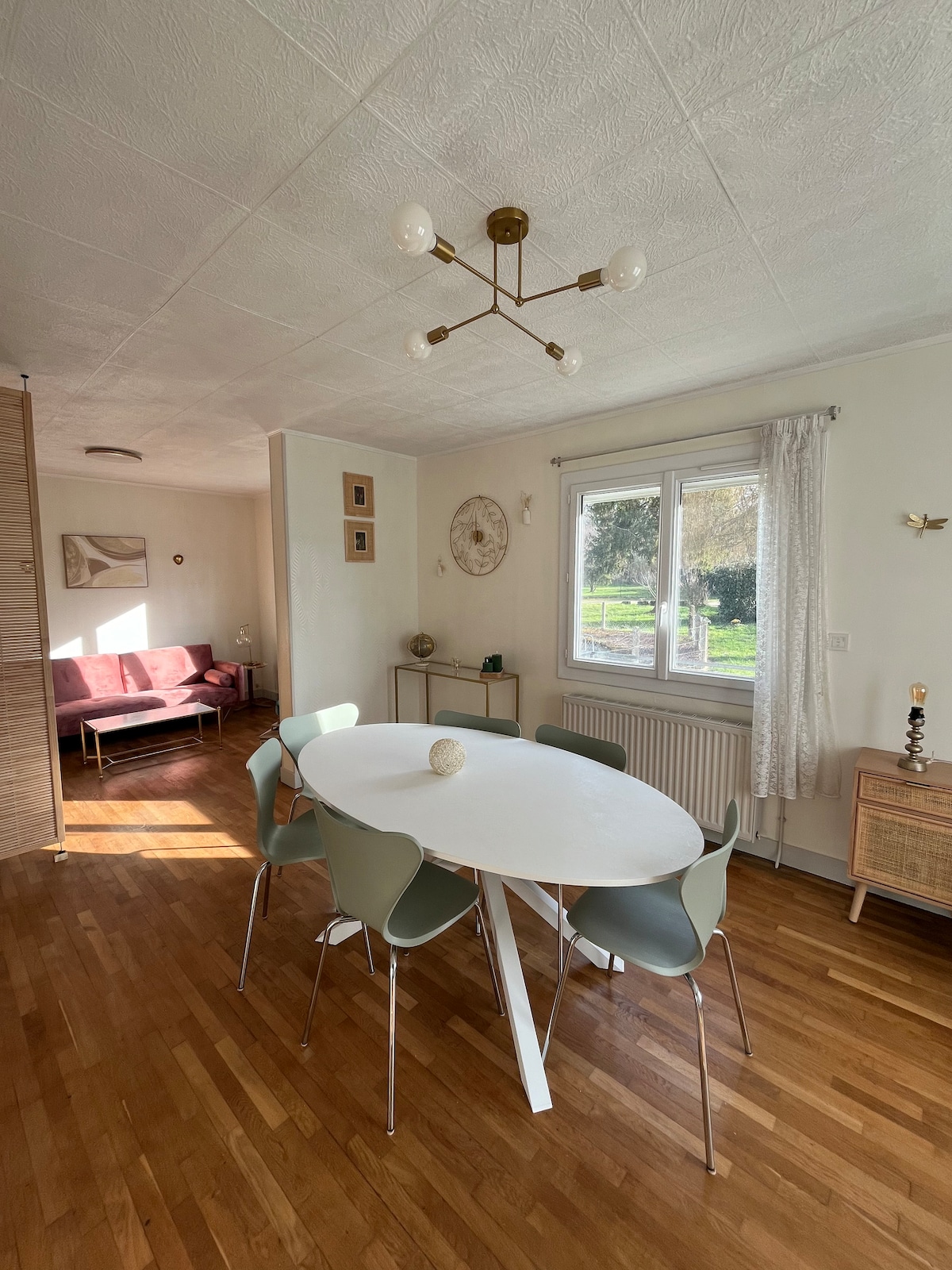Charmante maison au calme sur les hauteurs de Sainte-Sévère-sur-Indre. Possibilité d'accueillir 4 personnes grâce à une chambre indépendante avec lit double et un canapé convertible dans le séjour. La maison dispose également d'une grande terrasse et d'un jardin, sur lesquels vous pourrez profitez d'un salon extérieur, de transats et d'un barbecue. L'ensemble des équipements de base (draps, serviettes, gel douche/shampoing...) sont fournis avec la location.