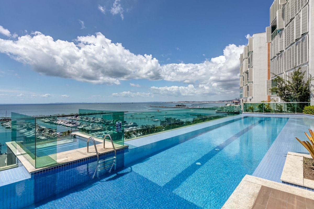 Uma das mais deslumbrantes unidades do Spot Barra, acomoda até 2 pessoas com conforto. Com vista mar, sendo a melhor posição para o Carnaval e com uma excelente vista de toda a Avenida Oceânica até o Farol da Barra. Prédio moderno com piscina, academia, Seven Wonders Restaurante no térreo que serve um delicioso e disputado café da manhã (pago), minimercado, recepção 24h e arquitetura deslumbrante. Ideal para quem busca sofisticação, vista incrível e fácil acesso às melhores atrações de Salvador.