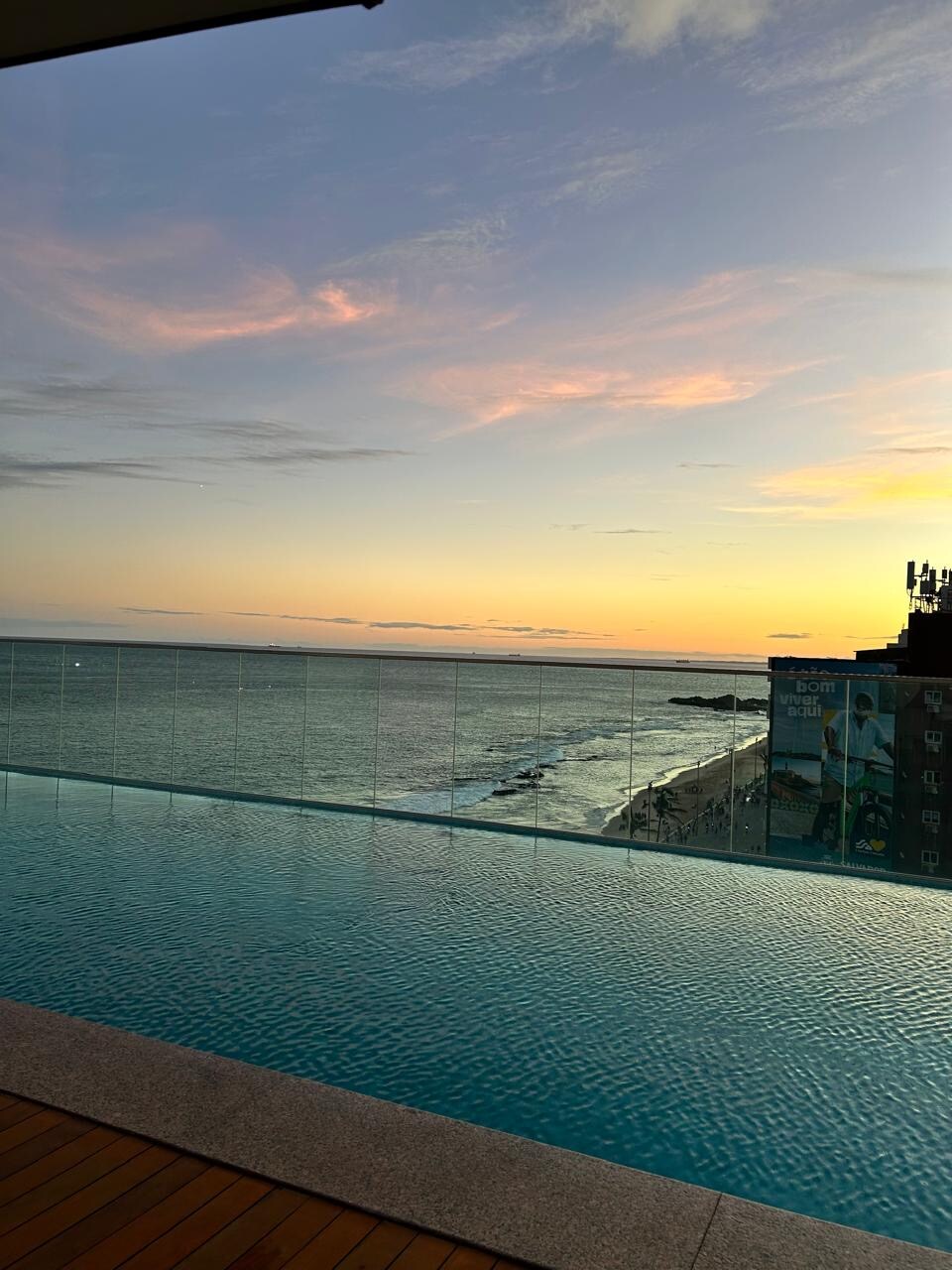 Flat novinho, recém reformado, em frente a praia, com vista lateral para o mar: da varanda é possível apreciar a praia, a avenida e o pôr do sol da Barra. Localizado no melhor ponto da Barra, perto de restaurantes, bares, mercados, farmácias e do Shopping Barra, além de fácil acesso aos principais pontos turísticos de Salvador. Dispõe de ar-condicionado split, ventilador de teto, TV e uma cozinha equipada (sem fogão). O Flat dispõe de camareira para limpeza diária e piscina de uso comum.