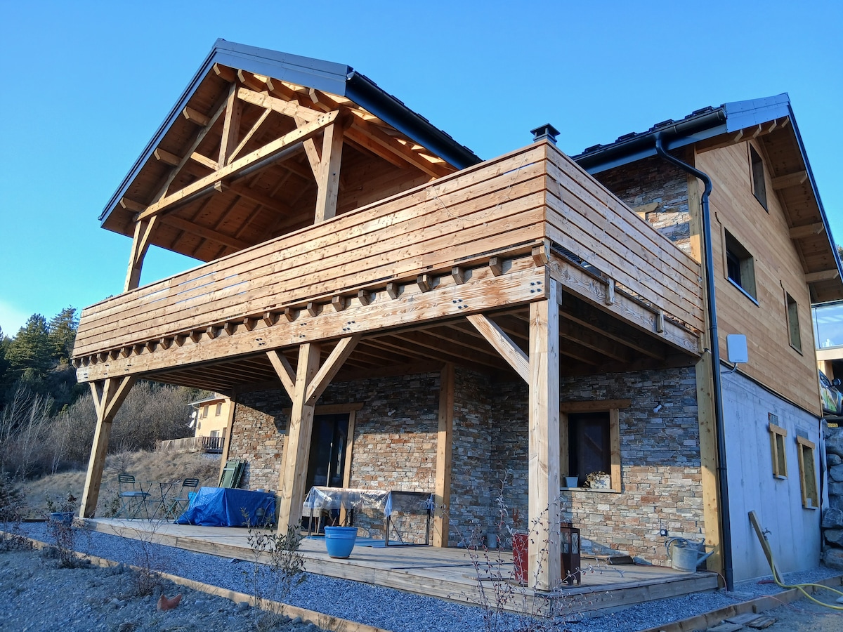 Bonjour, Здравствуйте, Здравствуйте, мы арендуем недавно отремонтированную, полностью оборудованную квартиру с наклонным потолком на последний этаж отдельного шале, расположенного на высотах тихой деревни. К услугам гостей большая терраса , парковка, 2 двуспальные кровати размера King size (5,25 футов) и прекрасный вид на горы. Мы живем между Jausiers и Barcelonnette. Это идеальное место, чтобы покататься на лыжах, отправиться в поход, насладиться праздниками Барселонетт или озером Жозьер. Постельное белье предоставляется. Надеемся на скорую встречу.