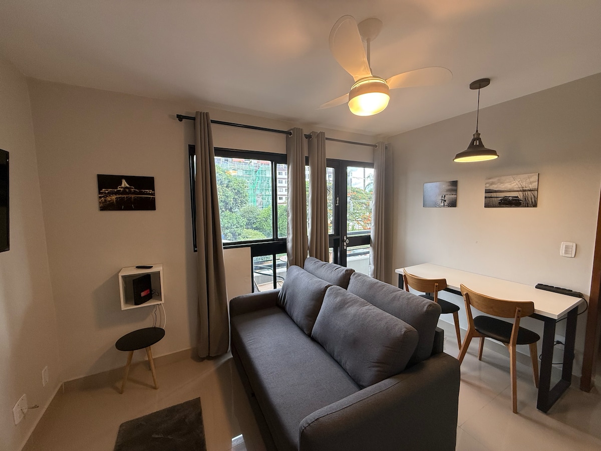 Студия — идеальное место для отдыха, благополучия и комфорта! Наслаждайтесь смелым и уютным опытом, созданным для вас! ❤️ Идеальное 📍 расположение в Тагуатинге: рядом с ресторанами, рынком, аптекой. — 1 км до торгового центра Taguatinga. — 400 м от метро. 💵 Оплатите в 6 рассрочек без процентов! Романтическое оформление по желанию Идеальная студия с: — Теплая и расслабляющая ванна. 🛀 - Лифт. - цифровой замок; - Smart TV - Кондиционер. - Wi-Fi; - Предоставляем постельное белье и полотенца.