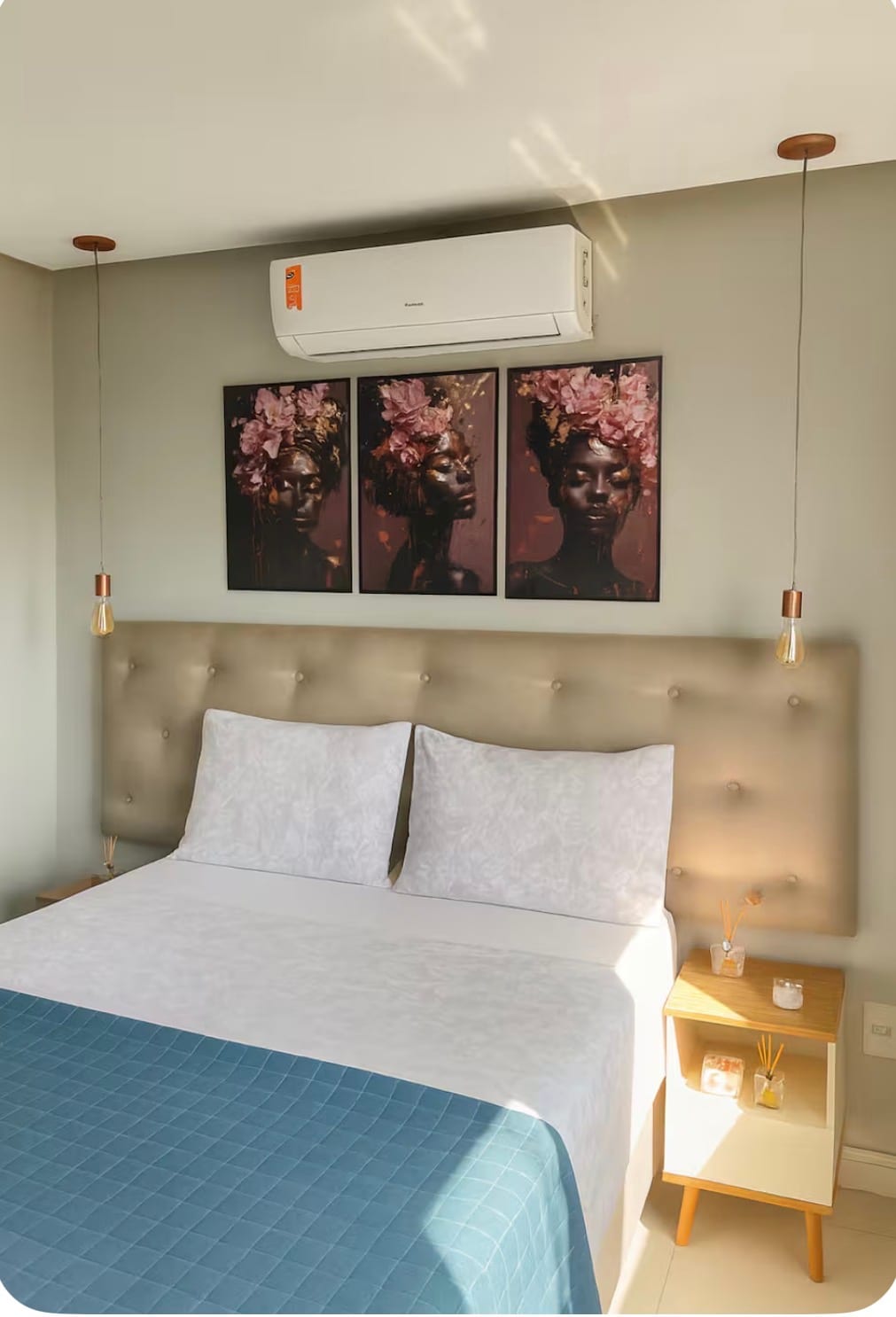 Lovely apartment with stunning ocean views, overlooking Salvador's main landmarks. From the balcony, besides the beautiful view of the All Saints Bay, you can admire the Bahia Marina, the Lacerda Elevator, the Solar do Unhão, and the São Marcelo Fort. The space is elegantly decorated, with environments equipped with everything you need, including a balcony with magnificent views. The bedroom features a comfortable queen-size bed, while the living room has a double sofa bed.