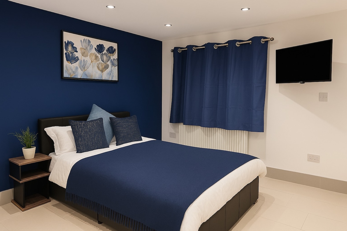 Отдохните всей семьей в этом тихом месте. В жилье есть собственная кухонная поверхность (без варочной панели), собственная ванная комната, отдельный вход, холодильник, микроволновая печь, чайник, тостер, телевизор и все необходимое для комфортного проживания. Рядом с магазинами, откуда легко добраться на общественном транспорте до центра Лондона и Хитроу. Продуктовые магазины Nisa Local, khushi Local находятся в 0,3 мили, Эшфорд-Хай-стрит, на которой много ресторанов и магазинов, тренажерный зал в 0,5 мили пешком - 10-12 минут.