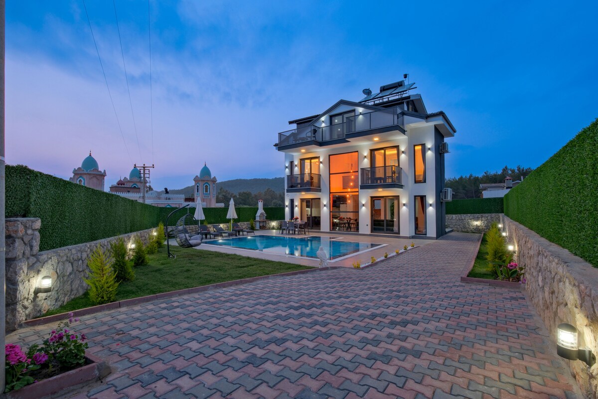 Наша вилла расположена в центре Фетхие, в 3 км от центра города Чарши и в 10 км от всемирно известного пляжа Ölüdeniz и в 3 км от пляжа Чалыш. К услугам гостей собственный бассейн и детский бассейн. Наша вилла с большим садом и барбекю оснащена системой наземного отопления и удобным отоплением с насосом IsI. У нас есть бесплатный Wi-Fi и детская кровать. В месяц можно арендовать жилье на длительный срок.