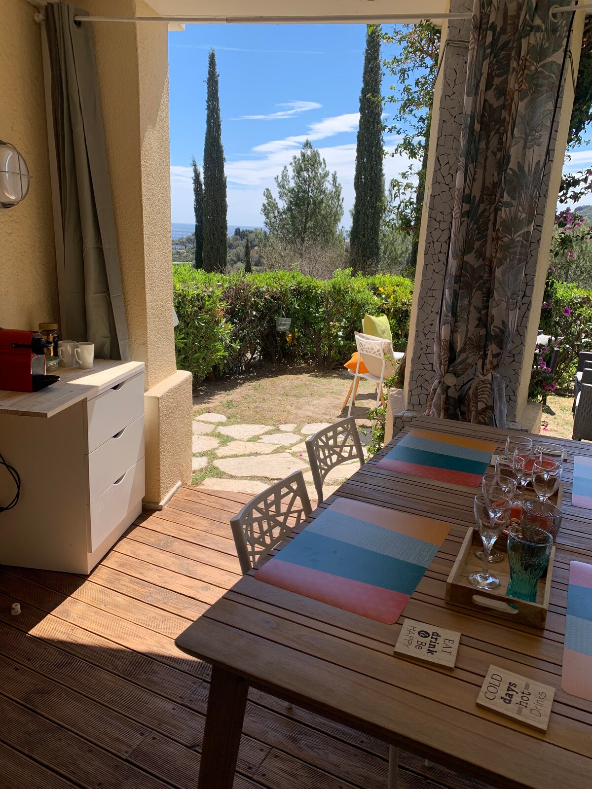 НЕДАВНО ОТРЕМОНТИРОВАННАЯ вилла в Сент-Айгульфе с собственной террасой с видом на море вмещает 4/6 человек. 10 минут пешком до площади Пост, 10 минут езды до пляжа. Отдельный вход с закрытой парковкой на улице. Охраняйте благоустроенные границы, а сзади - гриль. Кондиционер/отопление и Wi-Fi. Две большие просторные спальни с жалюзи и диваном-кроватью. Детская кроватка и стульчик для кормления. Прекрасная тихая и уединенная атмосфера. Все комнаты на одном уровне - подходит для семейного отдыха. Собаки приветствуются.