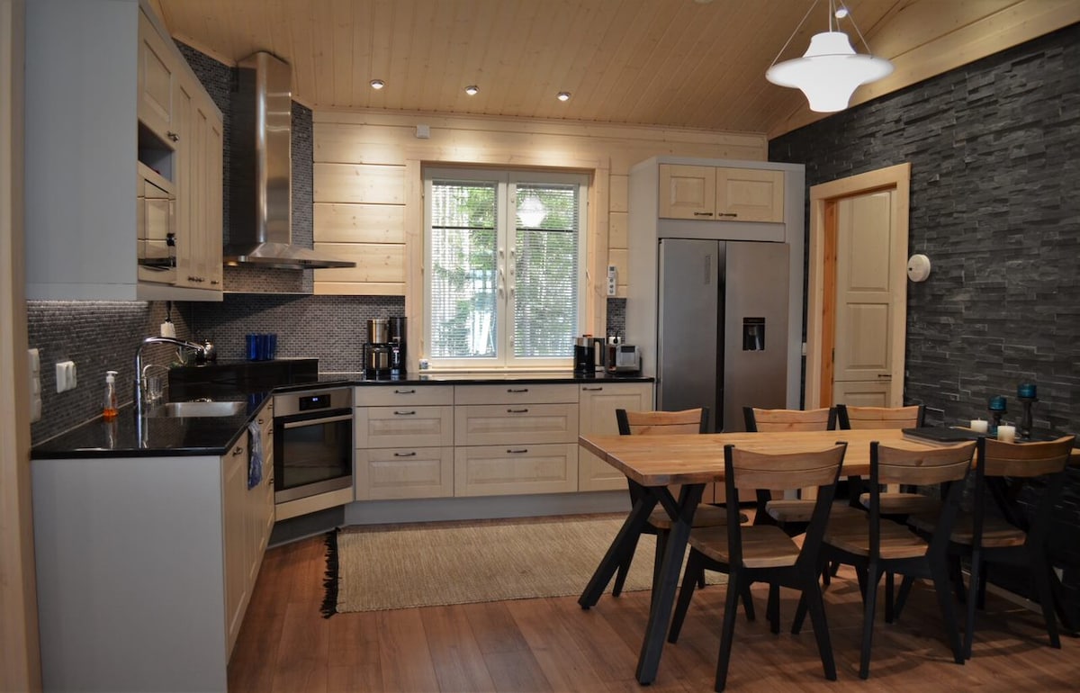Наслаждайтесь всей семьей в этой недавно построенной элегантной вилле. Большая застекленная терраса с мебелью и навесом. Большой причал на чистом озере. Отличная домашняя сауна. Хорошее дорожное сообщение и услуги Миккели поблизости. Два электровелосипеда в бесплатное пользование! Никаких соседей в пределах видимости, если вы также арендуете это жилье в нашем районе: airbnb.com/h/aittakurkilampi. Спросите! За дополнительную плату 150 € джакузи/гидромассажная ванна Постельное белье 15€/человек и окончательная уборка 100€