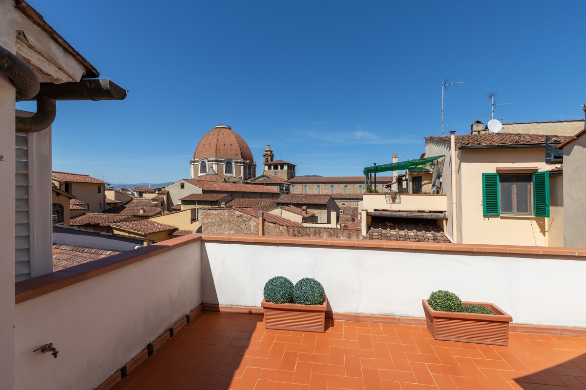 This superb huge luxurious apartment is situated in the old storic center of Florence in an original Palazzo from 15th century of the Medici family. It has been meticulously renovated with a modern and comfortable touch but keeping original details from its historical heritage with it is beautiful fresco ceilings dating back to its origins. The view over Brunelleschi's Basilica San Lorenzo will take your breath away the privileged location will allow you to enjoy the city at its fullest.