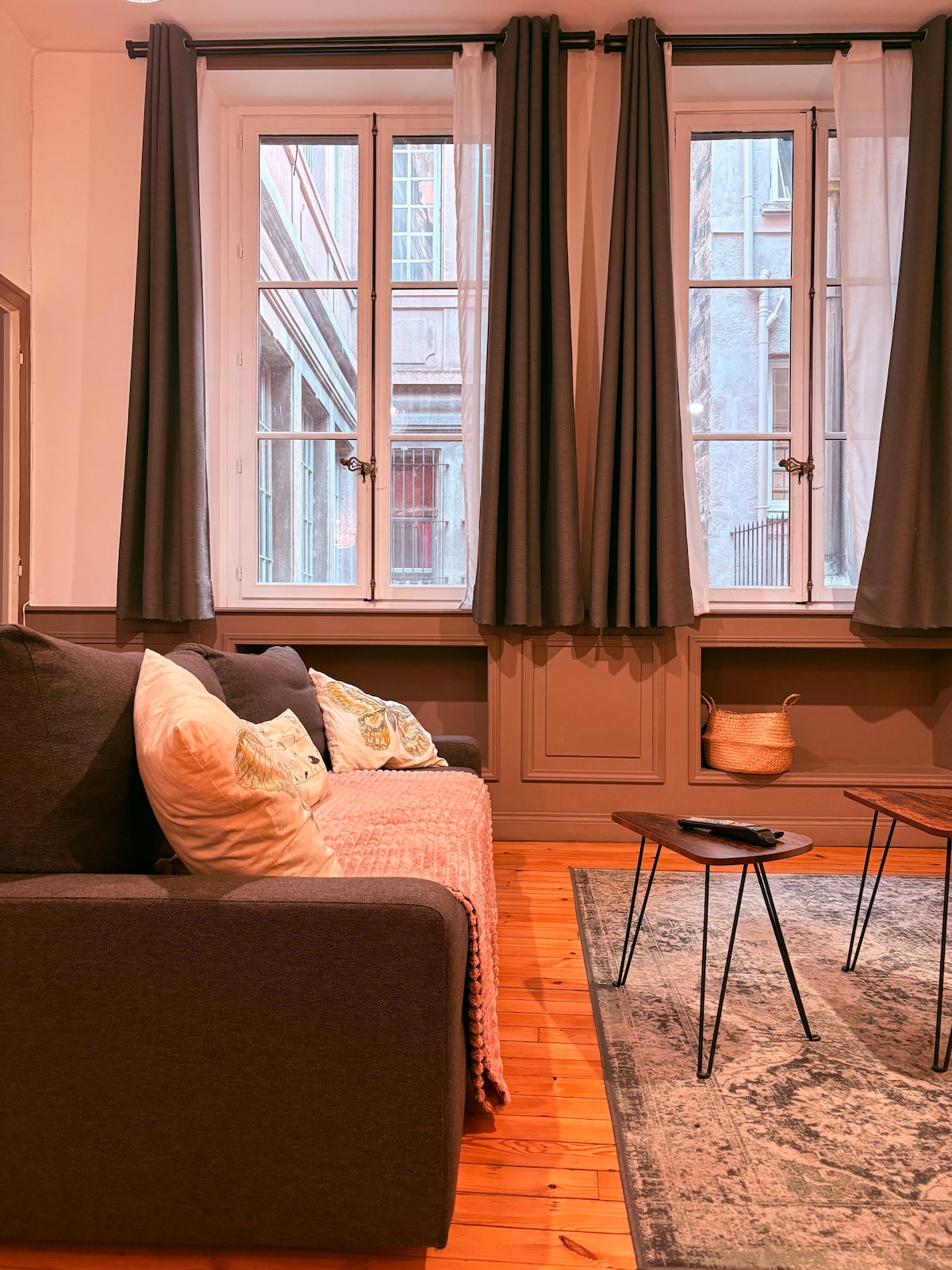 Batiment Classé Historique Idéal pour 2 à 4 personnes, cet appartement combine charme de l’ancien et confort moderne. Il dispose d’un lit double, d’un canapé-lit, et d’un Wi-Fi haut débit. Situé au premier étage (sans ascenseur) d’un bâtiment de charme donnant sur une cour intérieure, il offre un calme absolu, tout en étant à deux pas des restaurants, musées et commerces. Profitez d’un séjour paisible en plein centre historique de Saint-Étienne, dans un cadre chaleureux et authentique.