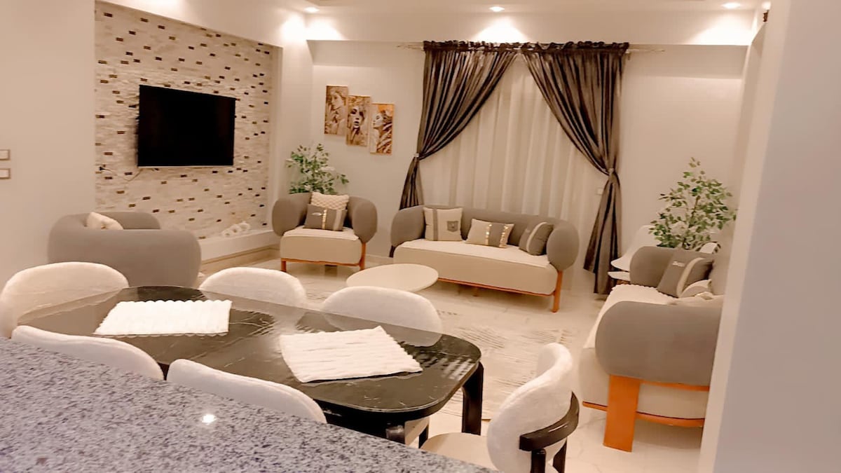 Welcome to Your Home in Sheikh Zayed!✨ Enjoy your stay in this modern, fully furnished 2-bedroom apartment in the heart of Sheikh Zayed City. 🌆 5mins — to Espana Plaza mall and The gate mall. 7mins — to Arkan Mall and Capital business park. 10mins — to Mall of Egypt and Mall of Arabia. 25mins — to the Pyramids and Zamalek. What You’ll Get: •🛏️ 2 comfy bedrooms. •🛋️ High speed internet with 65’ TV •🍳 A fully equipped kitchen •🌿 Your own private garden •❄️ Air conditioning