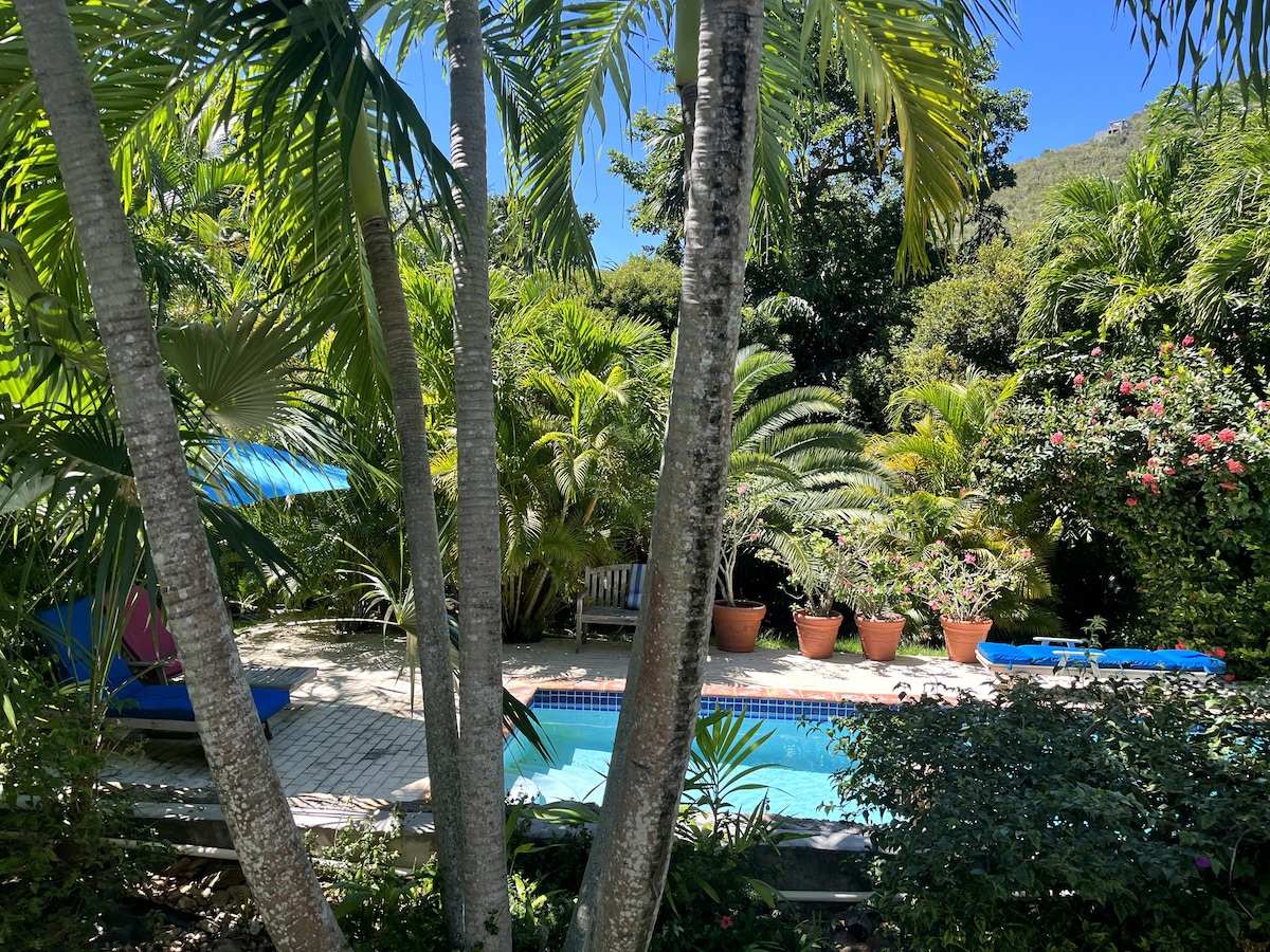 Потрясающие закаты и вид на Сент-Томас и окружающие острова за миллион долларов! Эта просторная, комфортабельная и стильно оформленная квартира-студия площадью 600 квадратных футов. Он находится в идеальном месте - всего в 2 минутах езды от города, но в тихом районе. Рекомендуется арендовать автомобиль, но это не обязательно для тех, кто может подняться по длинным и очень крутым холмам. Квартира расположена на нижнем уровне частного дома, который в настоящее время восстанавливается после ураганов.
