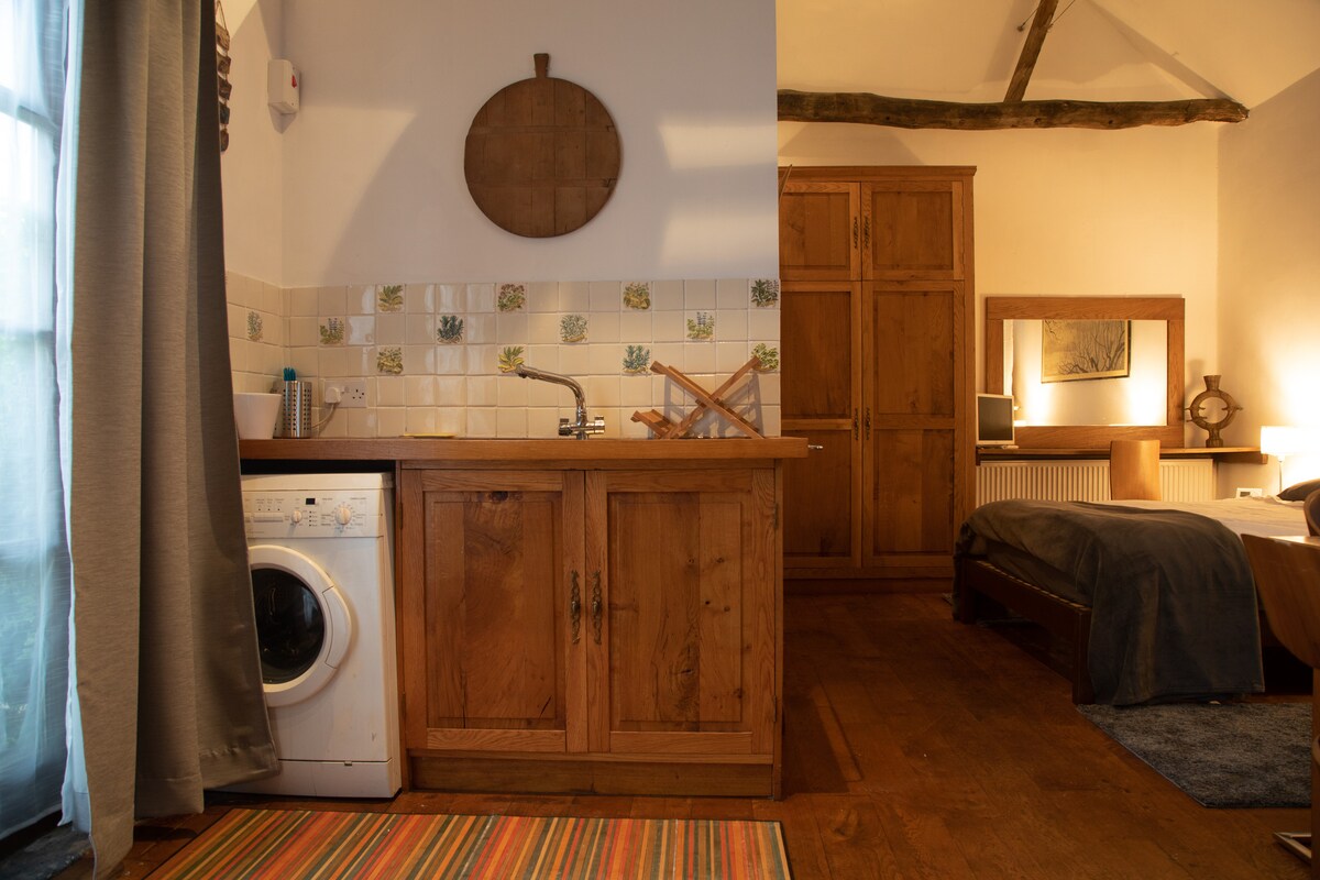 Переоборудованная в 2017 году из небольшого амбара (около 1850 года), автономная студия сочетает в себе характер с изысканной мебелью. ПОЛНЫЙ РЕМОНТ В МАЕ 2025 года с новой мини-кухней, полом, ковром, деревянными панелями. Отдельно от главного дома с воротами безопасности и круглосуточным видеонаблюдением, предоставляется парковка, открытая гостиная зона и вид на загон с овцами и кур на свободном выгуле. Аптон — небольшая деревня в трех километрах от Саутвелла, где можно прогуляться по сельской местности и зайти в местный паб, где подают горячие блюда.