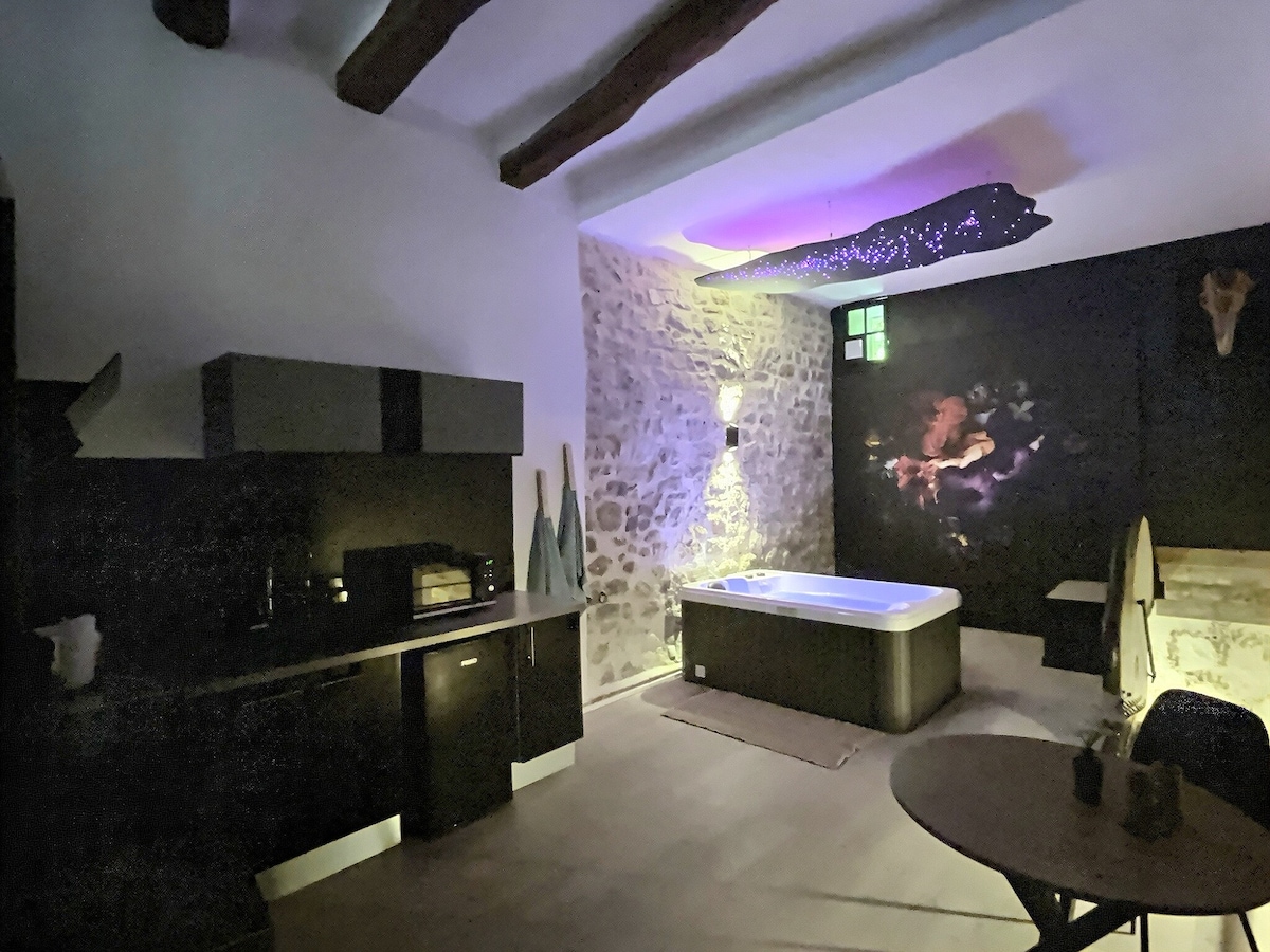 Au Clos des Perles à Tourtour, Charmant studio tout confort avec option balnéothérapie dans une pièce indépendante avec accès direct depuis le logement. Pensez à réserver votre créneau balnéo de 2h30 , 60 euros à régler sur place pour deux personnes. Au calme et idéalement situé dans ce magnifique village classé du haut-Var, village dans le ciel avec sublime panorama. Vous pouvez profiter de la piscine chauffée ( selon saison) à débordements, de petits moments de jeux (pétanque, ping-pong)