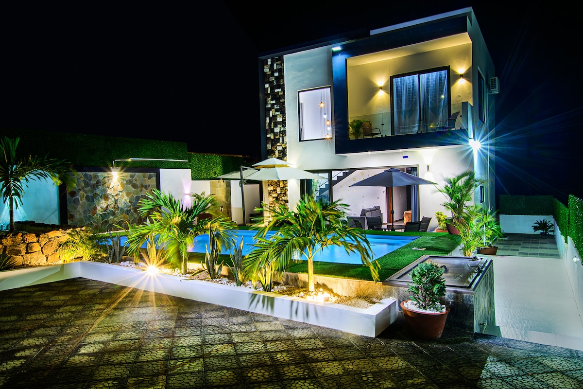 Stunning villa with security cameras and alarm systems where you can relax with the whole family at this peaceful place to stay with a private pool and parking .5mins walking to the beach and supermarket of Albion mall .The villa have a minimum stay of 5 days and a maximum stay of one month. check-in:2 Pm check-out 11Am. A tourist fees of €3 per tourist over 12 aged, per night must be paid upon arrival. We take a caution of €100 for damaging refundable if no damage on departure.