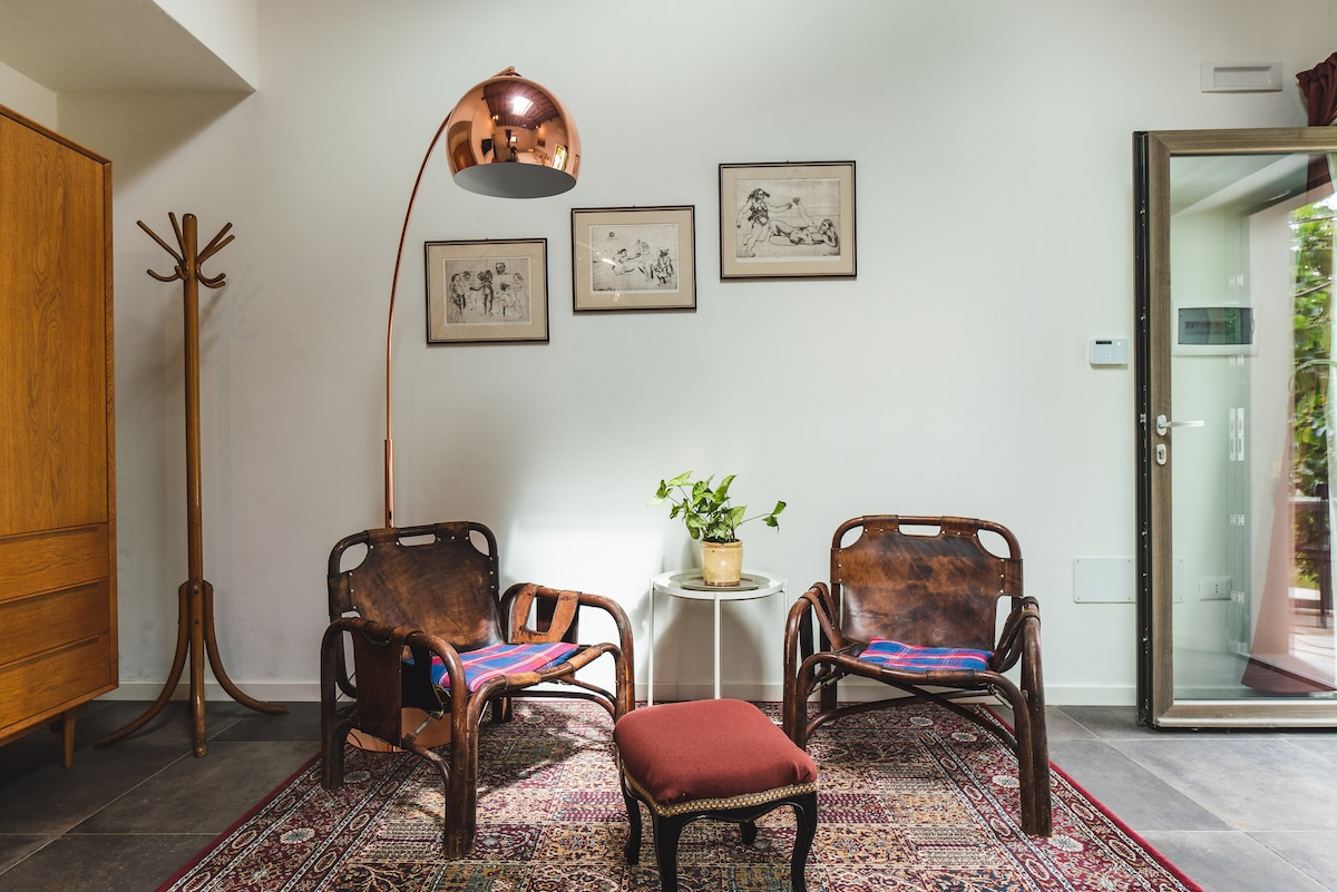 Терраса состоит из двухэтажной комнаты, недавно полностью отремонтированной и оформленной в стильном стиле. Она расположена в Сеттиньяно, небольшом районе в 6 км от центра Флоренции на автобусе № 10, конец линии находится всего в 50 метрах от въездных ворот дома. За 15 минут вы можете легко добраться до центра города. Рядом с воротами находится бар Vida, всегда наполненный вкусной выпечкой и свежими сэндвичами с трамеццино.
