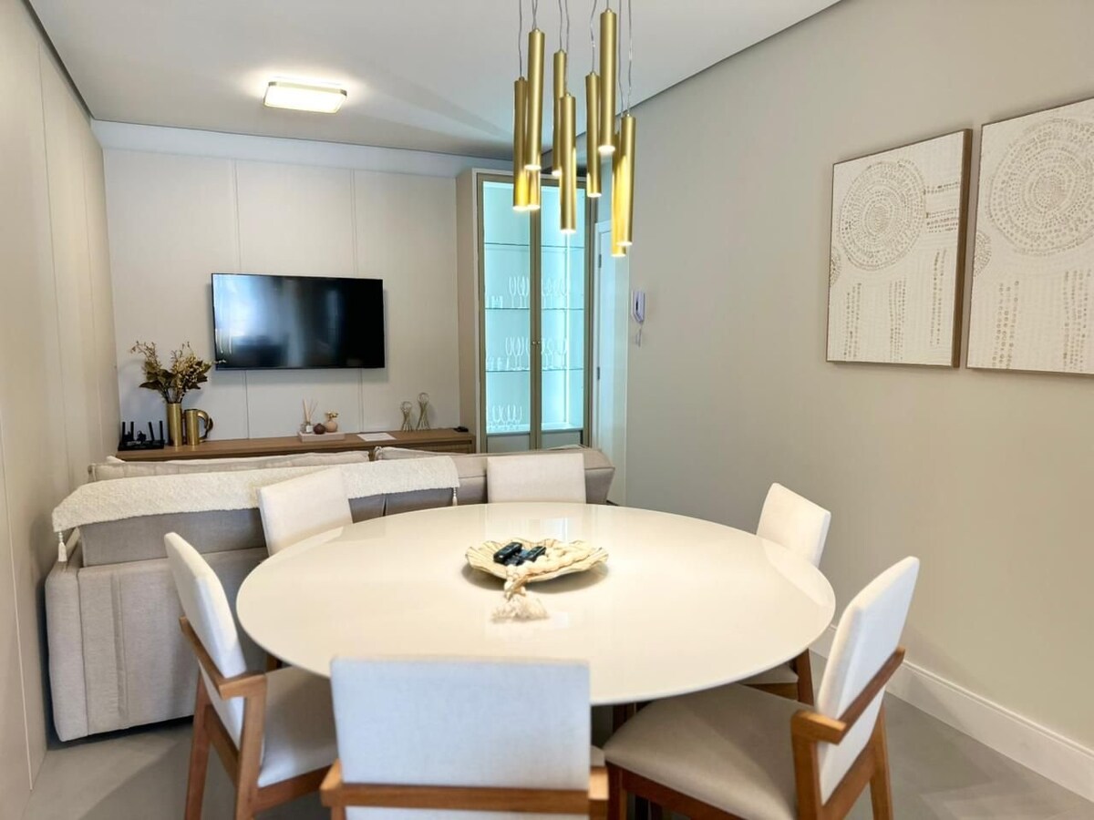 Добро пожаловать в нашу роскошную квартиру с двумя спальнями, люксом, захватывающим видом на город и море. Современный, с полной техникой, оборудованной кухней, кондиционером и стиральной машиной. Изысканный и уютный декор. Центральное расположение, недалеко от Pátio Milano, с эксклюзивным доступом к бассейну, фитнес-центру, сауне. Наша квартира во Флорианополисе для отдыха, отдыха или бизнеса предлагает незабываемый отдых. Чувствуйте себя как дома во временном доме!