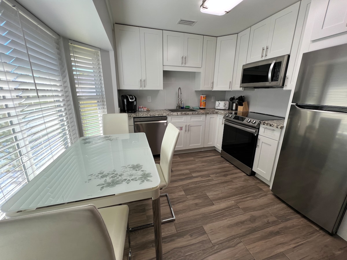Это недавно отремонтированный люкс для свекрови на первом этаже, расположенный на пляжной стороне шоссе 98 в западной части Мехико-Бич. В распоряжении гостей 1 спальня с двуспальной кроватью размера Queen size, 1 ванная комната и две встроенные двухъярусные кровати. Вход в ванную находится внутри спальни. Здесь также есть небольшая кухня, открытая для гостиной. В закрытом дворе есть газовый гриль, стол, зонтик и шезлонги. Вы можете столкнуться со мной за пределами садоводства и так далее. *НЕ ПЛЯЖ!